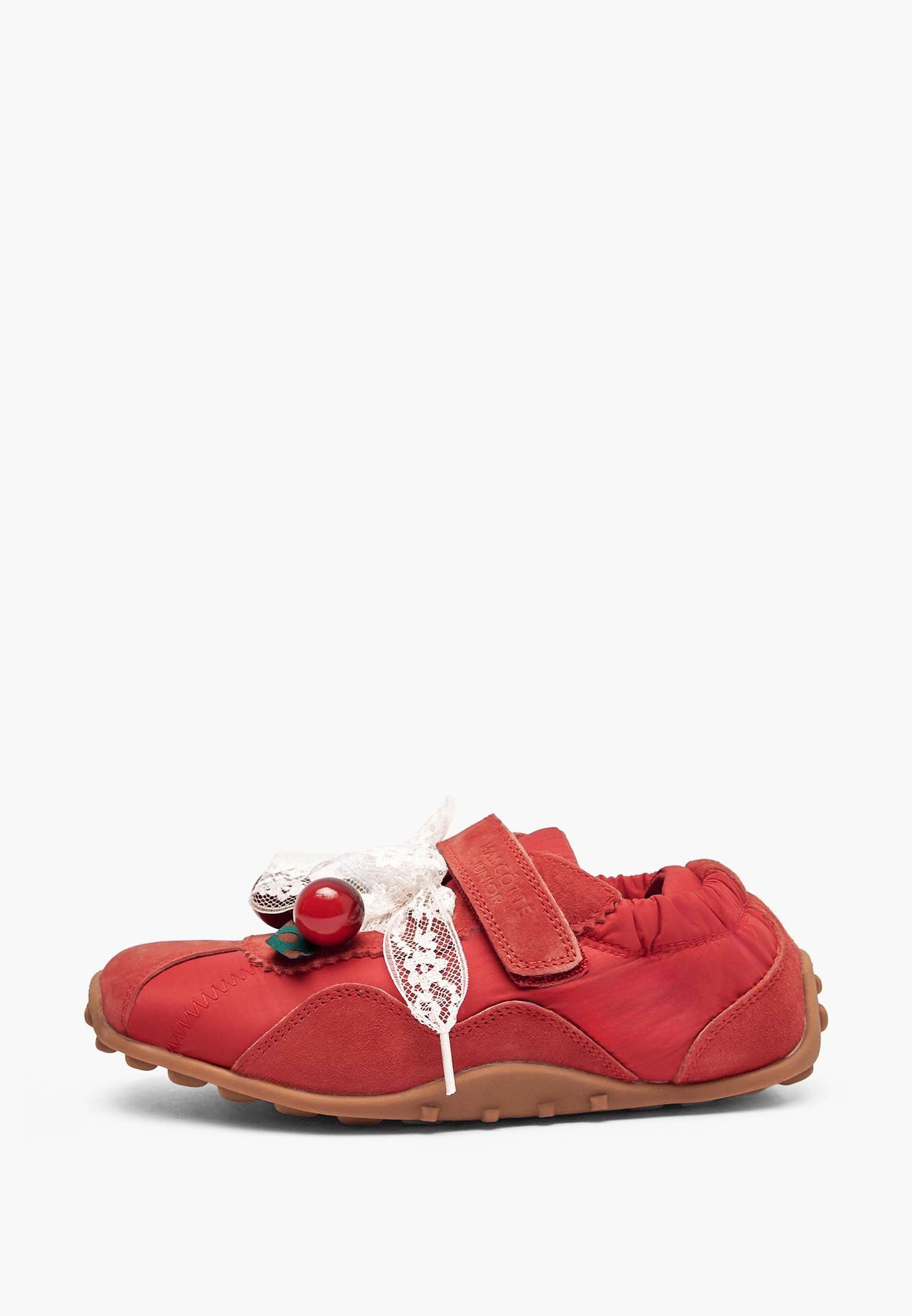 - Красные детские кроссовки Mascotte - это оригинальная и удобная обувь для девочек. Верх модели выполнен из прочного текстиля с велюровыми вставками, а подкладка и стелька из натуральной кожи, что обеспечивает комфорт и здоровый микроклимат внутри кроссовок. Подошва обладает дополнительной гибкостью, а специально разработанная стелька равномерно распределяет давление на стопу, снижая нагрузку и делая ходьбу комфортной в течение всего дня. Модель фиксируется с помощью липучки-велькро и шнуровки, а на заднике предусмотрена резинка для удобного облегания и дополнительной фиксации стопы. Дизайн отличается оригинальными деталями: шнурки украшены кружевной ленточкой и декоративными вишенками. Эти качественные кроссовки Mascotte отлично подойдут для повседневной носки и активного отдыха, также доступны в бежевом и коричневом цветах.
