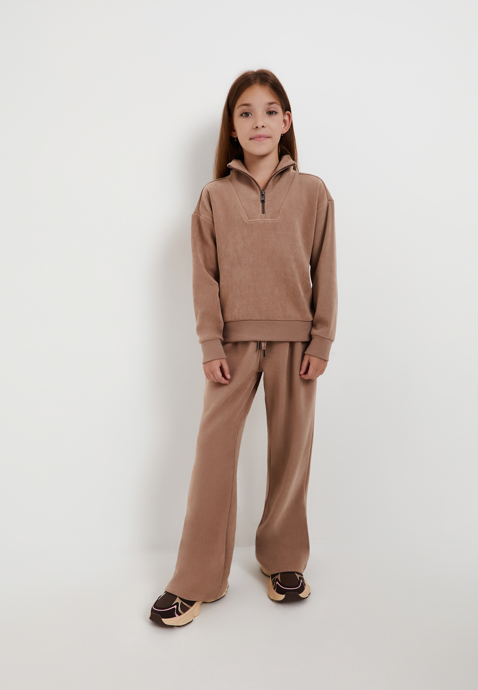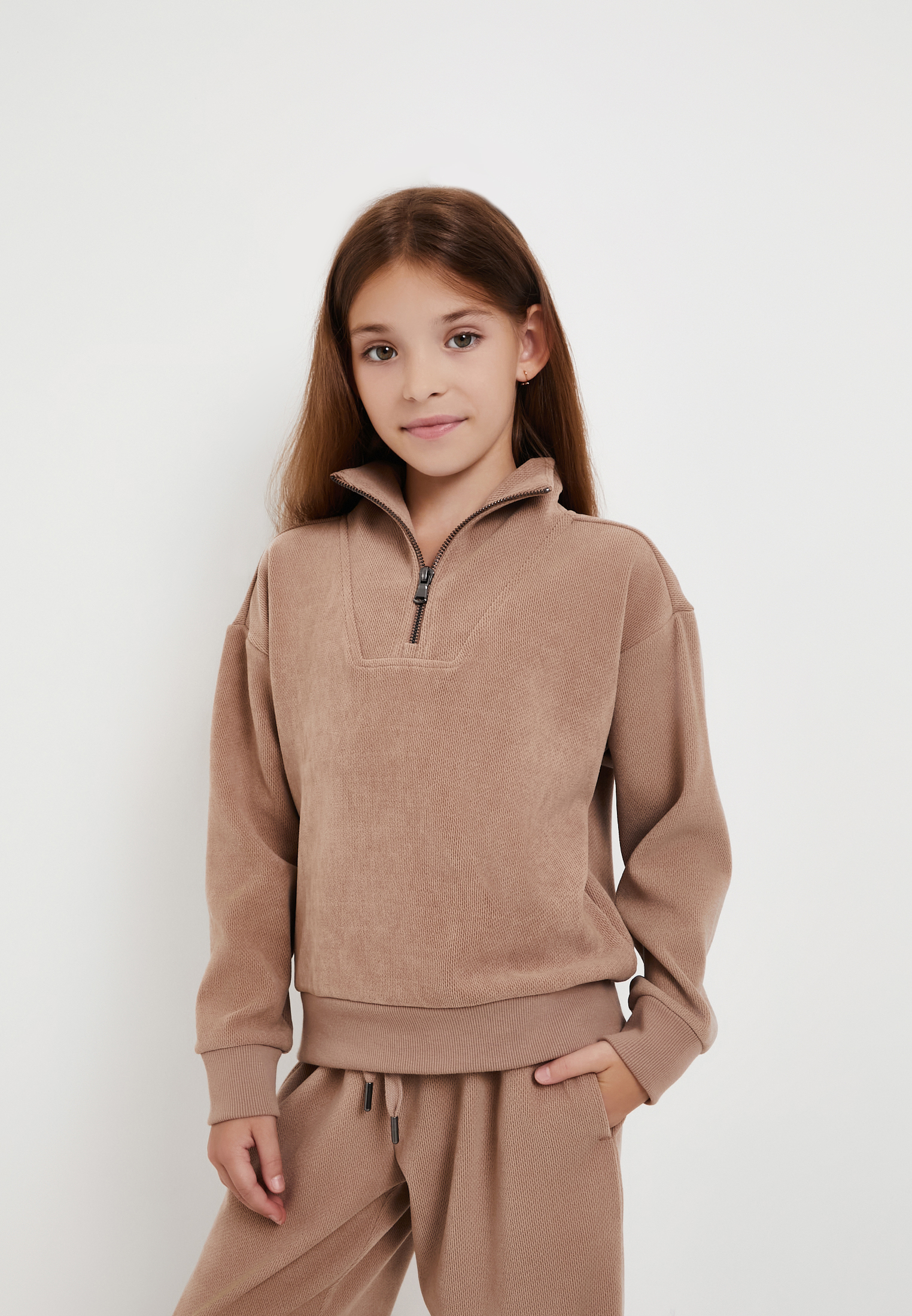 - Детской джемпер Mascotte Junior цвета капучино – стильный элемент гардероба для создания комфортных повседневных образов. Модель с высоким воротником-стойкой и практичной застежкой на молнию до середины груди, обеспечивающей дополнительный комфорт в прохладную погоду. Внутренняя сторона джемпера гладкая, а внешняя – с приятным ворсом, визуально напоминающим велюр или бархат, но с более прочной структурой. Трикотаж обладает высокой плотностью (400гр/м2), сохраняет форму и устойчив к образованию заломов. Джемпер выполнен из 110% полиэстера, что гарантирует прочность, долговечность и простоту ухода.
