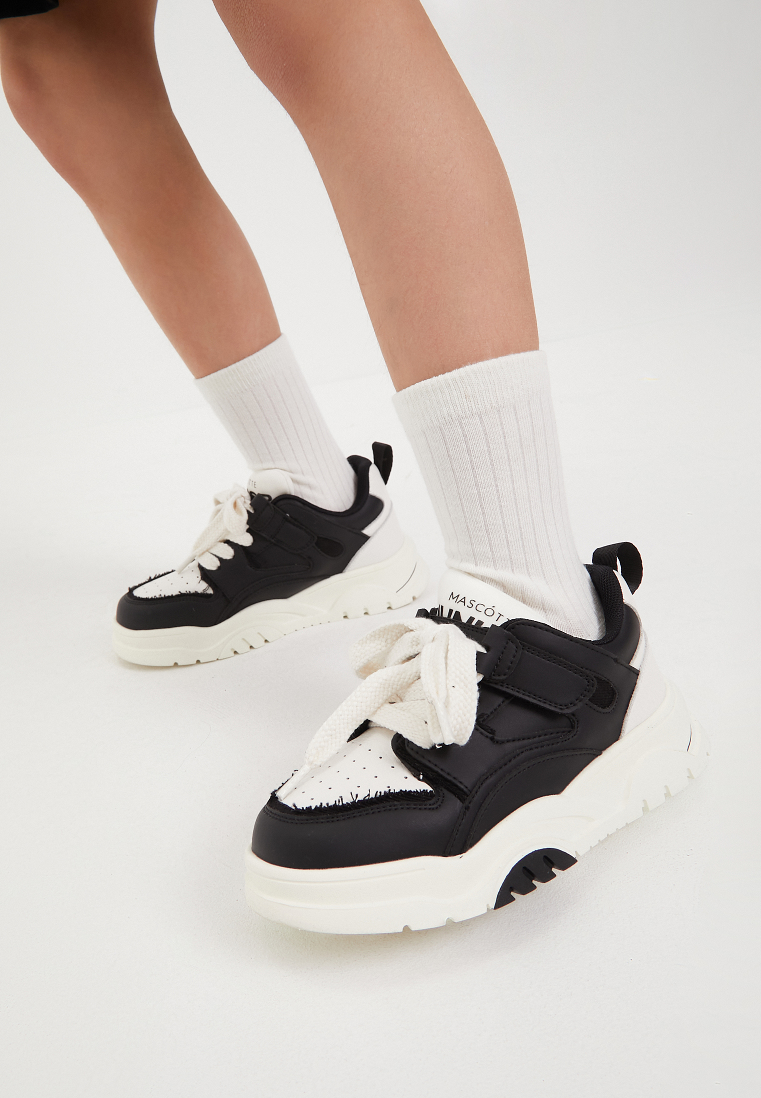 - Детские кроссовки Mascotte JUNIOR станут как базовым, так и акцентным элементом гардероба. Выполненные из экокожи — высококачественного материала — они отличаются особой прочностью и долговечностью. Специальная стелька равномерно распределяет давление на стопу, снижая нагрузку при ходьбе. Облегченная скульптурная подошва высотой 3,5 см помимо сниженного веса обладает улучшенными амортизирующими свойствами. Благодаря этому нагрузка на стопу уменьшается, а ходьба становится более комфортной. Удобная застежка-липучка упрощает процесс обувания: фиксация шнуровки на нужной высоте происходит без необходимости последующей регулировки. Кроссовки представлены в двух классических цветах: черном и белом.