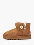 - Mascotte JUNIOR радует своими детскими вариациями зимних укороченных угг, которые благодаря боковым разрезам с пуговицами освежают привычный и вид и привносят нотку свежести в стандартные формы. Подклад и стелька пары выполнены из натурального меха и шерсти, а верх представлен на выбор в серебристой двухлицевой коже и бежевом велюре.