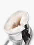 - Детские яркие угги серебристого цвета станут главной деталью образа в зимний период. Верх выполнен в коже из спилка, а подклад - из натурального меха для комфортного нахождения на улице при температуре до -5/-20 градусов. Подошва высотой 2,3 см из резины вместе с ее особым рельефом обеспечивает повышенную устойчивость к скольжению, что особенно важно, когда ребенок двигается.