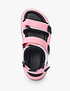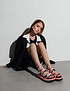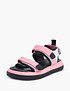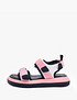 - Добавление текстильных вставок в кожаные сандалии, благодаря которым модель обретает спортивную casual стилистику - основной тренд последнего года и он только набирает обороты. Пара дополнена высокой подошвой 4 см и удобными ремешками для надежной фиксации ноги во время ходьбы. Представлены в белом, синем и розовом цвете на выбор.
