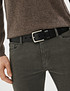 - Черный кожаный ремень для классического костюма или джинсов. Качественная кожа смотрится респектабельно. Застежка надежная, простая в использовании. Размер аксессуара: 100 см длина, 4 см ширина.