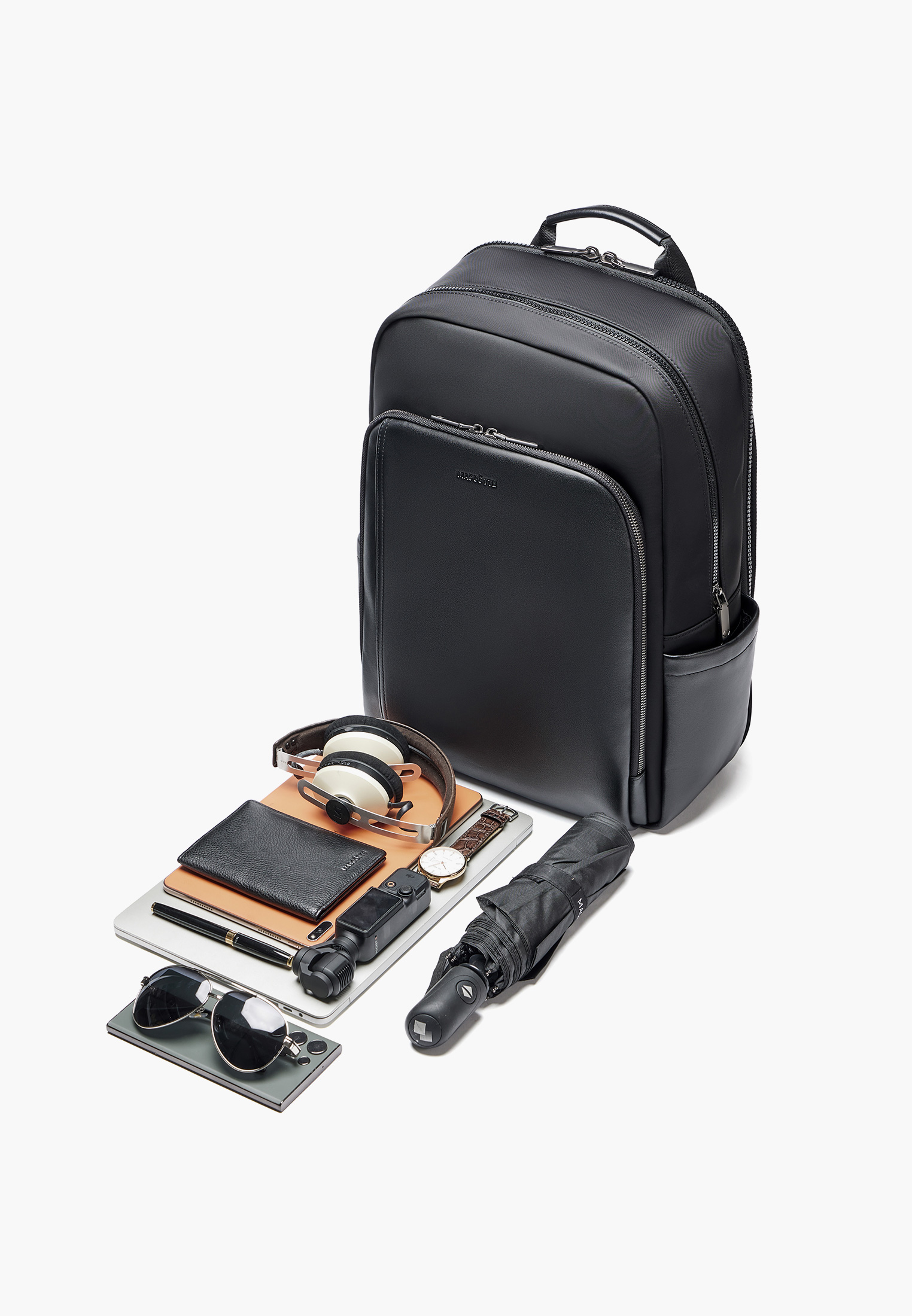 - Черный мужской рюкзак в городском стиле станет надежным спутником для повседневных дел, деловых встреч или активного отдыха. Выполнен из прочного текстиля с кожаными вставками, которые придают модели стильный и презентабельный вид. Вместительное основное отделение дополнено внешним отделением на надежной молнии., а дополнительные боковые открытые карманы позволяют быстро достать нужные мелочи, не открывая рюкзак полностью. Для комфортной переноски предусмотрены две регулируемые плечевые лямки длиной 116 см и ручка для ношения в руке. Вес изделия всего 1,35 кг делает его удобным для ежедневного использования, а размеры 44×32×27 см обеспечивают оптимальную вместимость без потери компактности. Универсальный черный цвет гармонично дополнит как строгие, так и кэжуал-образы, подчеркивая практичность и современный стиль.