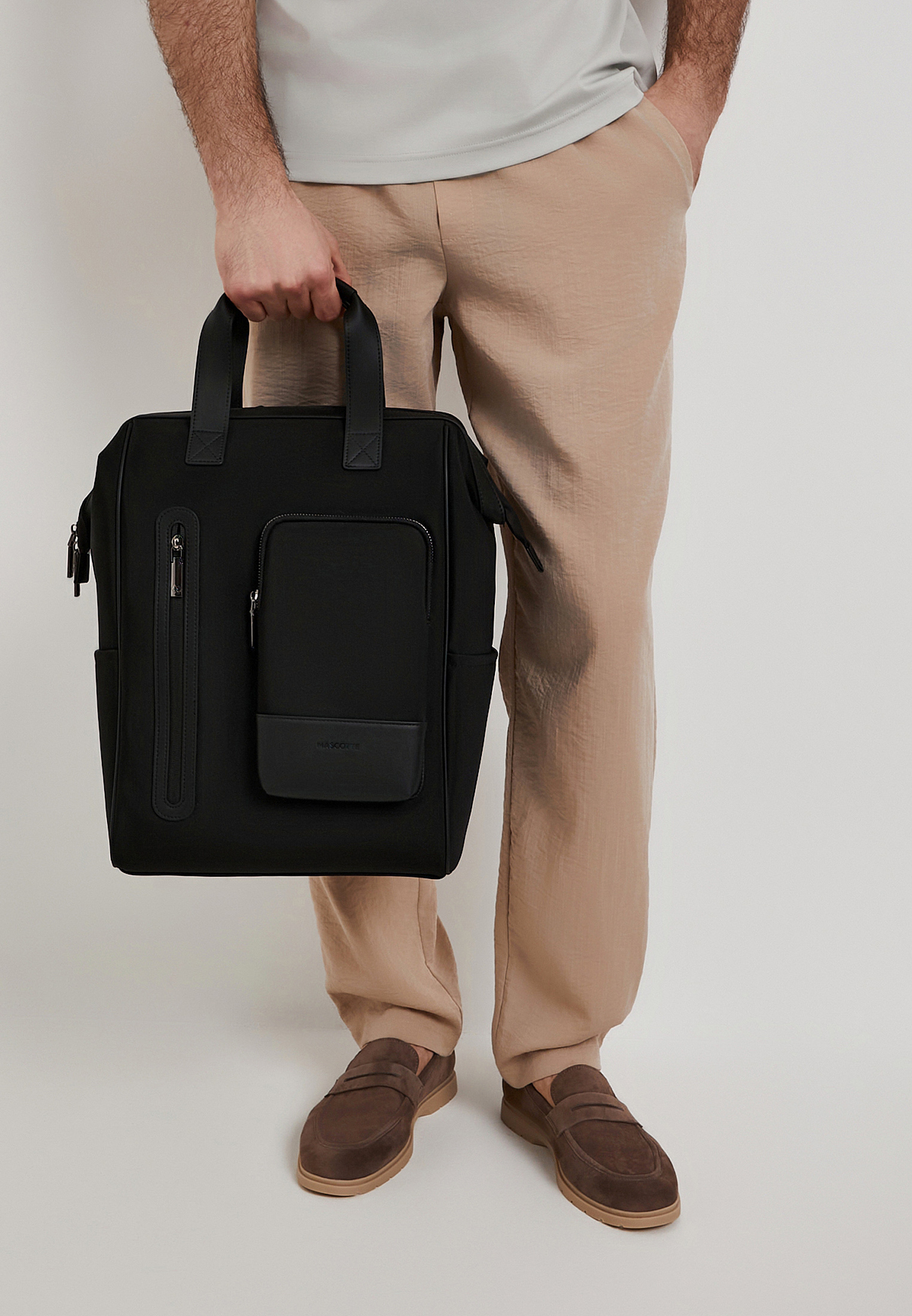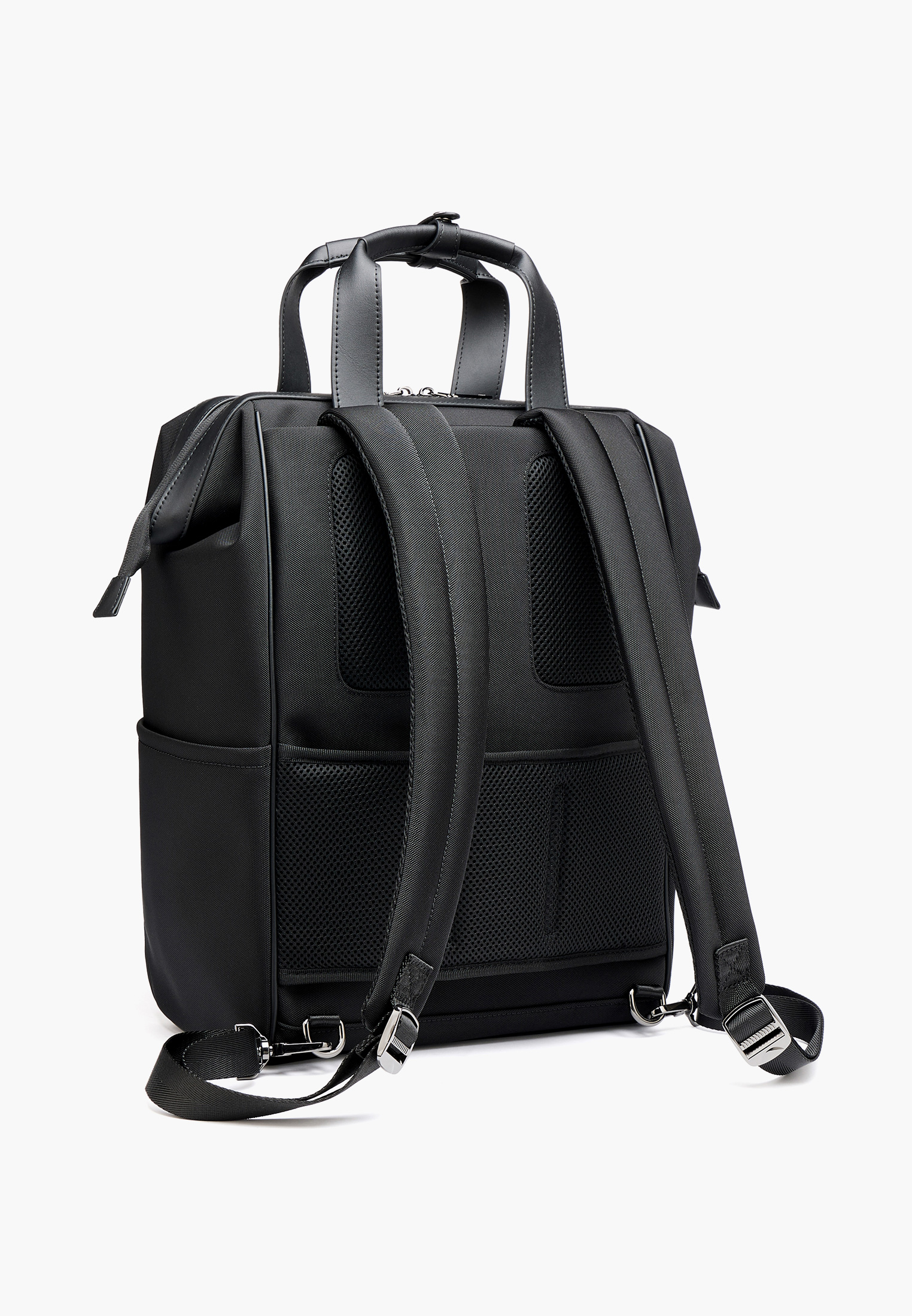 - Черный мужской рюкзак станет надежным спутником для повседневных дел, поездок или активного отдыха. Выполнен из прочного текстурированного текстиля с элегантными вставками из искусственной кожи, которые придают модели стильный и утонченный вид. Легкий вес всего 1,45 кг делает его удобным для длительного ношения, не создавая лишней нагрузки. Вместительное основное отделение дополнено двумя внешними карманами на молнии, а также двумя открытыми боковыми карманами, идеально подходящими для бутылки воды или зонта. Габариты рюкзака составляют 42×29×17 см, что позволяет комфортно разместить ноутбук и документы формата А4. Регулируемые лямки и две короткие ручки обеспечивают удобство ношения как на плечах, так и в руке. Застежка на молнию надежно защищает содержимое, а лаконичный дизайн делает этот рюкзак практичным и стильным выбором для тех, кто ценит функциональность и комфорт.