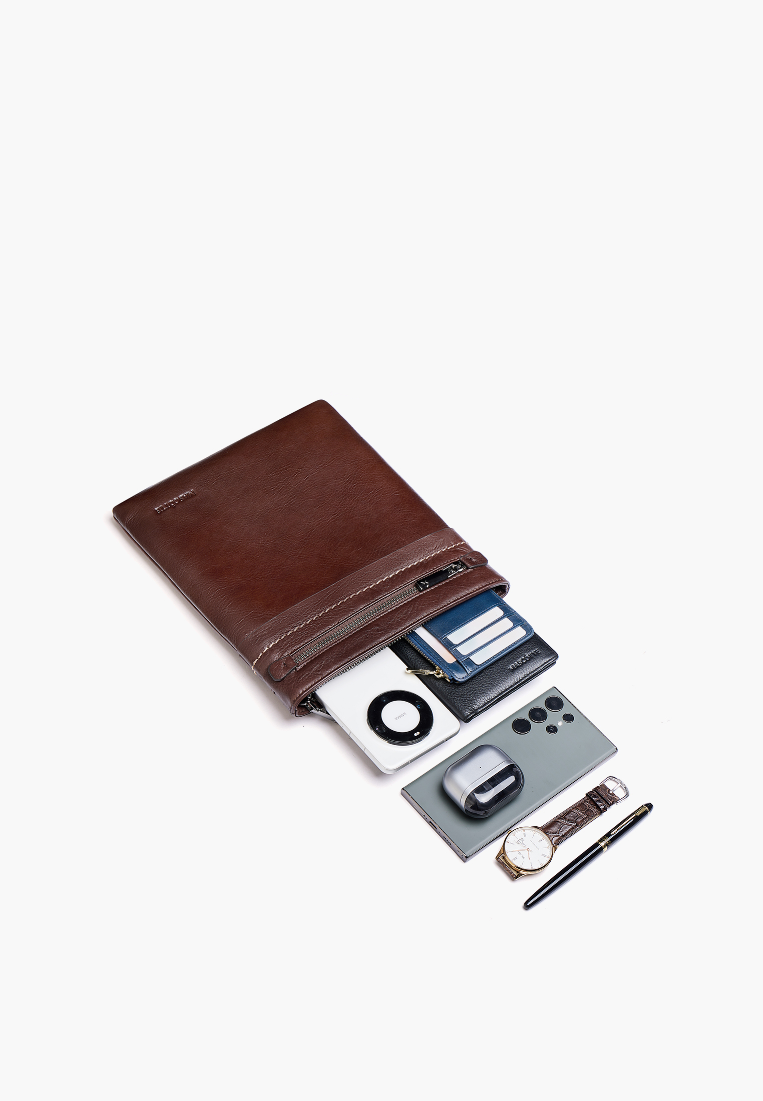 - Мужская сумка-планшет Mascotte в коричневом цвете идеально подходит для повседневного использования. Изготовленная из натуральной кожи, эта модель отличается долговечностью и благородным внешним видом. Внутренняя часть дополнена износостойкой текстильной подкладкой, обеспечивающей сохранность ваших вещей. Надежная застежка на молнии гарантирует безопасность, а стильная фурнитура цвета «металлик» придает аксессуару современный акцент. При своих компактных размерах – 27 см в высоту, 23 см в длину и 2 см в ширину – эта модель достаточно вместительна для самых необходимых предметов. Удобный регулируемый ремень длиной 150 см позволяет комфортно носить изделие через плечо. Вес изделия – 550 гр. Данная модель Mascotte доступна также в классическом черном цвете.