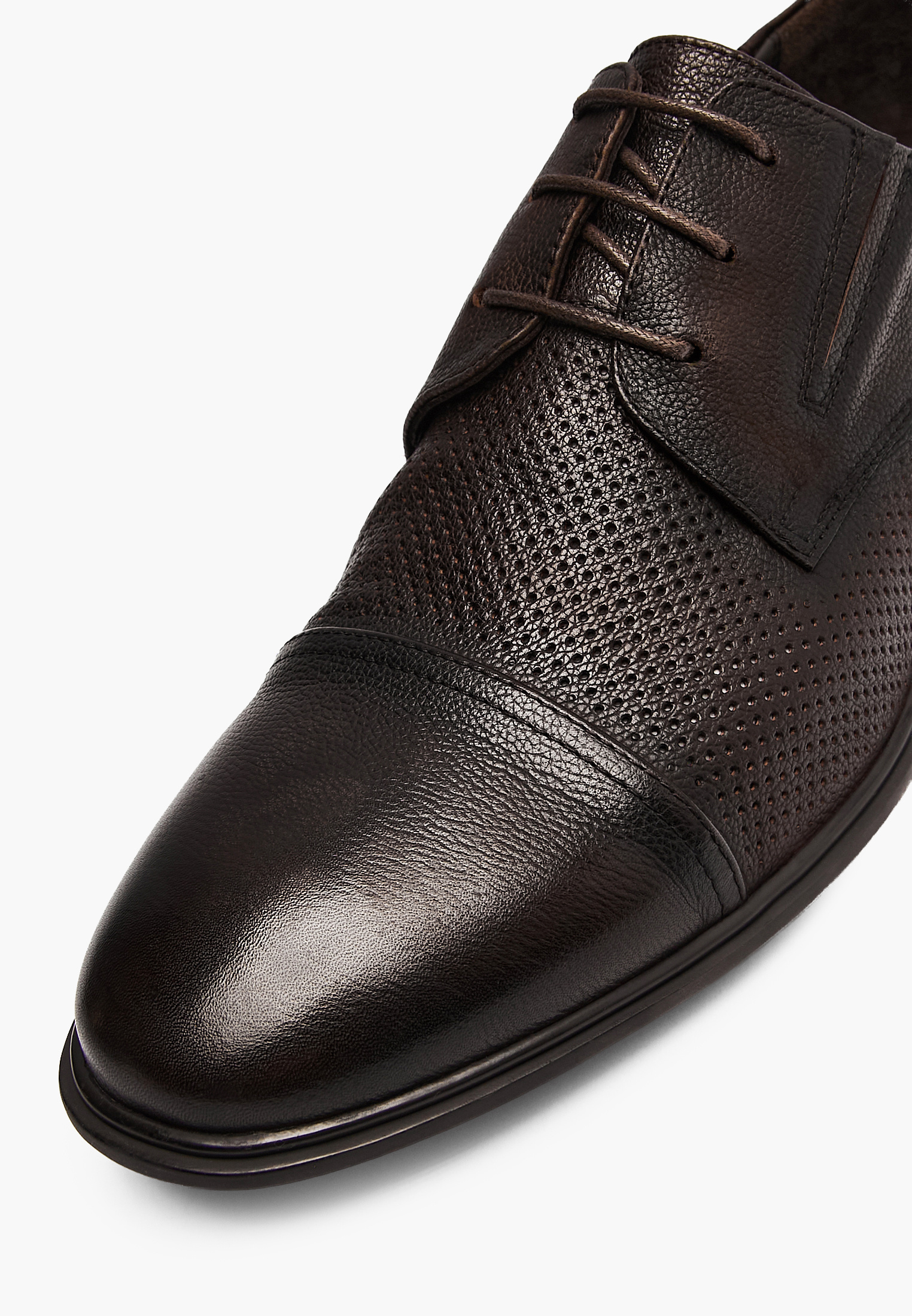 - Коричневые мужские дерби Mascotte выполнены из натуральной кожи, которая отличается прочностью и долговечностью. Гибкая конструкция подошвы обеспечивает естественную свободу движений стопы и помогает снизить утомляемость при длительной носке, а специально разработанная стелька равномерно распределяет нагрузку на стопы. Классический отрезной носок и перфорация в носочной части придают модели выразительный и современный характер, а эластичные вставки по бокам позволяют легко и быстро надевать обувь. Эти стильные дерби Mascotte станут универсальным решением как для делового гардероба, так и для повседневных образов. Модель также доступна в черном цвете.