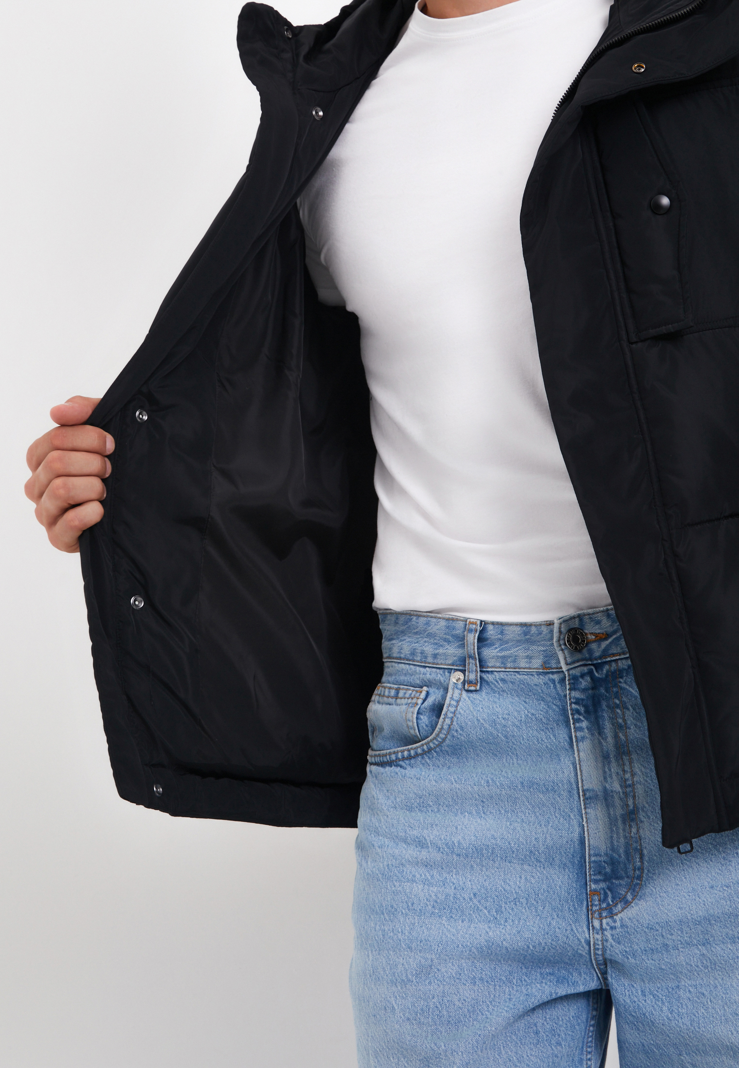 - Мужской повседневный пуховик от бренда Lite by Mascotte – идеальный выбор для холодного сезона. Верх и подкладка изделия выполнены из практичного полиэстера, что обеспечивает высокую износостойкость и улучшенную теплоизоляцию. Основной наполнитель состоит из 100% полиэстера плотностью 320 гр/м², что позволяет комфортно носить модель при температуре до -20 градусов. Пуховик обладает водоотталкивающими свойствами и имеет прямой силуэт. Модель застегивается на молнию и кнопки, что обеспечивает надежную фиксацию от ветра и холода. Внутренняя и внешняя ветрозащитные планки обеспечивают дополнительный комфорт при носке. Модель дополнена по двумя прорезными карманами по бокам и одним нагрудным карманом на молнии для хранения мелочей. Цвет модели – черный, что делает ее универсальным и стильным элементом гардероба. Этот пуховик станет отличной защитой от зимних холодов, благодаря своим водоотталкивающим свойствам и практичному износостойкому материалу. На модели размер L. Параметры модели: 103-83-107, рост 190.