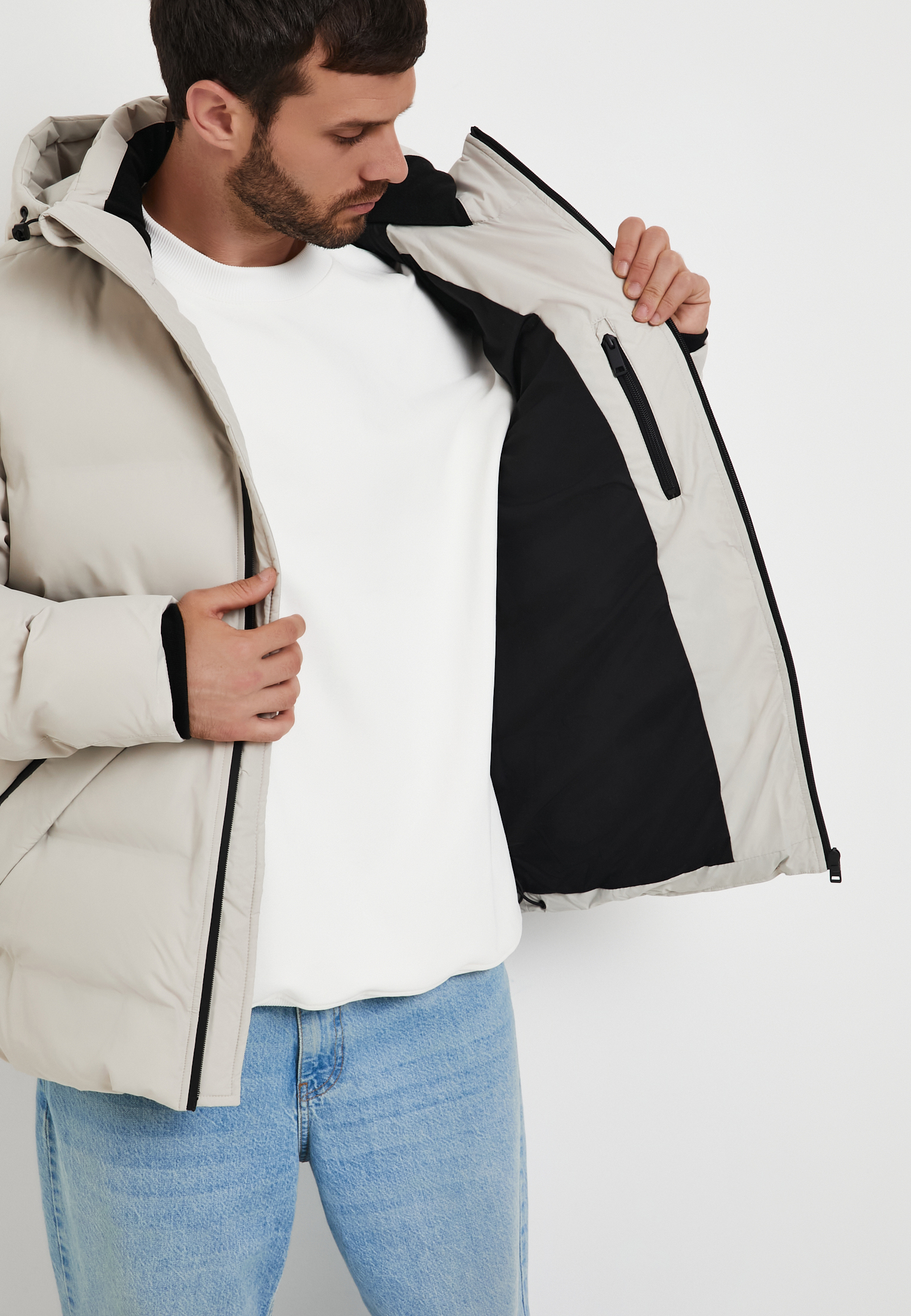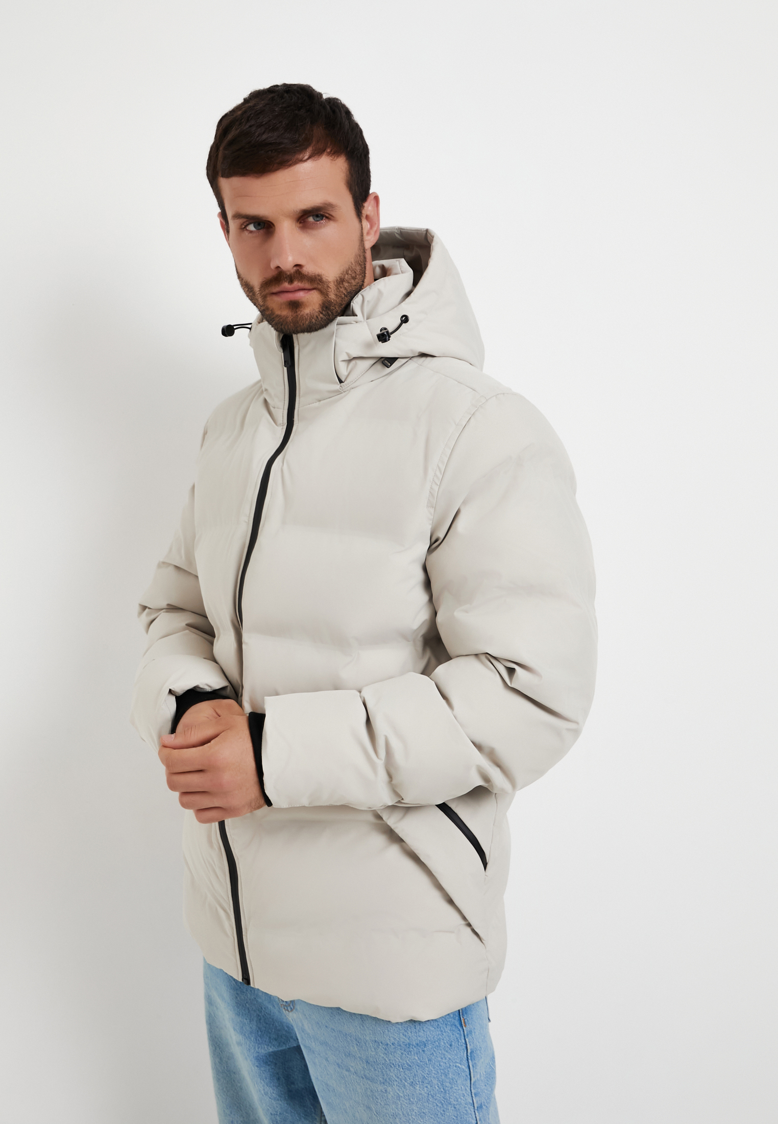 - Мужской пуховик Mascotte серо-бежевого цвета – надежный барьер от зимних морозов. Верх изделия и подкладка выполнены из полиэстера и обработаны водоотталкивающим средством. Стильная утепленная куртка имеет воротник-стойку и функциональный съемный капюшон с возможностью регулировки объема. Рукава отделаны внутренними манжетами из эластичной рибаны (эластичное трикотажное полотно с рельефным рисунком, напоминающим резинку) для максимального комфорта и защиты от холода. Низ куртки можно подстроить по фигуре с помощью эластичного шнура и стопперов. Центральная застежка-молния с водоотталкивающим покрытием обеспечивает надежную защиту. Внешняя часть куртки украшена двумя боковыми карманами на кнопках и двумя – на молнии с прорезиненным покрытием, что позволяет безопасно хранить ценные вещи. Во внутренний карман на молнии удобно разместить телефон или кошелек, обеспечивая их надежную сохранность. Пуховик предназначен для температурного режима от 0 до -10 градусов, идеальный вариант для прохладной погоды. На модели размер L. Параметры модели: 98-78-97, рост 186