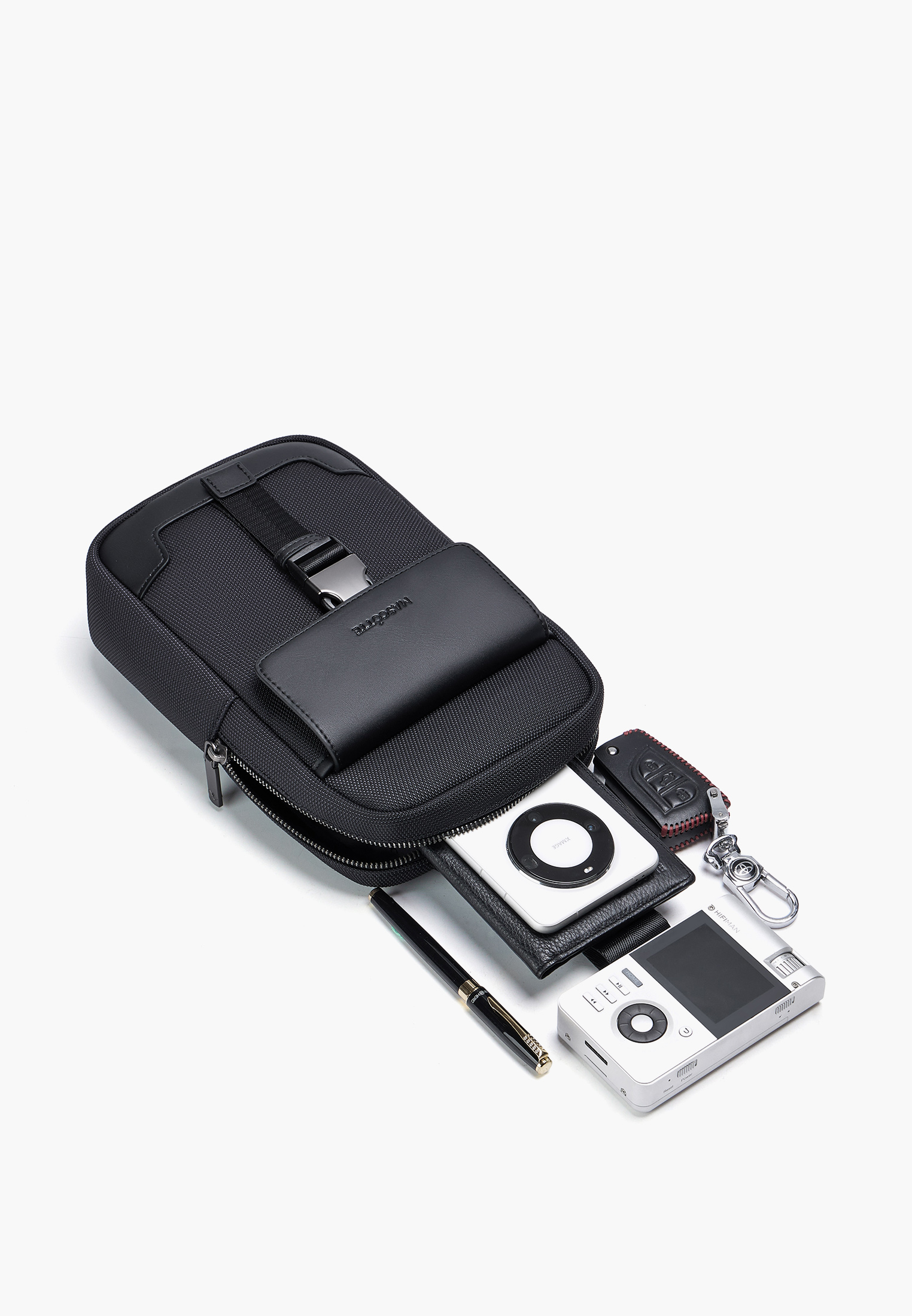 - Сумка-слинг Mascotte – это стильный и функциональный аксессуар для современного мужчины. Выполненная из прочного текстиля темно-синего цвета, она отличается высоким качеством и долговечностью. Компактные размеры (высота 27 см, длина 17 см, ширина 6 см) делают ее удобной для повседневного использования. Сумка оснащена одним вместительным отделением, а также внутренними карманами – на молнии и открытым, для оптимальной организации пространства. Наружный карман спереди обеспечивает быстрый доступ к необходимым мелочам. Застежка-молния и пряжка гарантируют сохранность содержимого. Сумка дополнена регулируемым ремнем длиной 150 см, позволяющим носить ее через плечо или на груди. Матовая фурнитура цвета пистолет придает изделию современный и лаконичный вид.