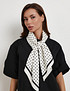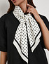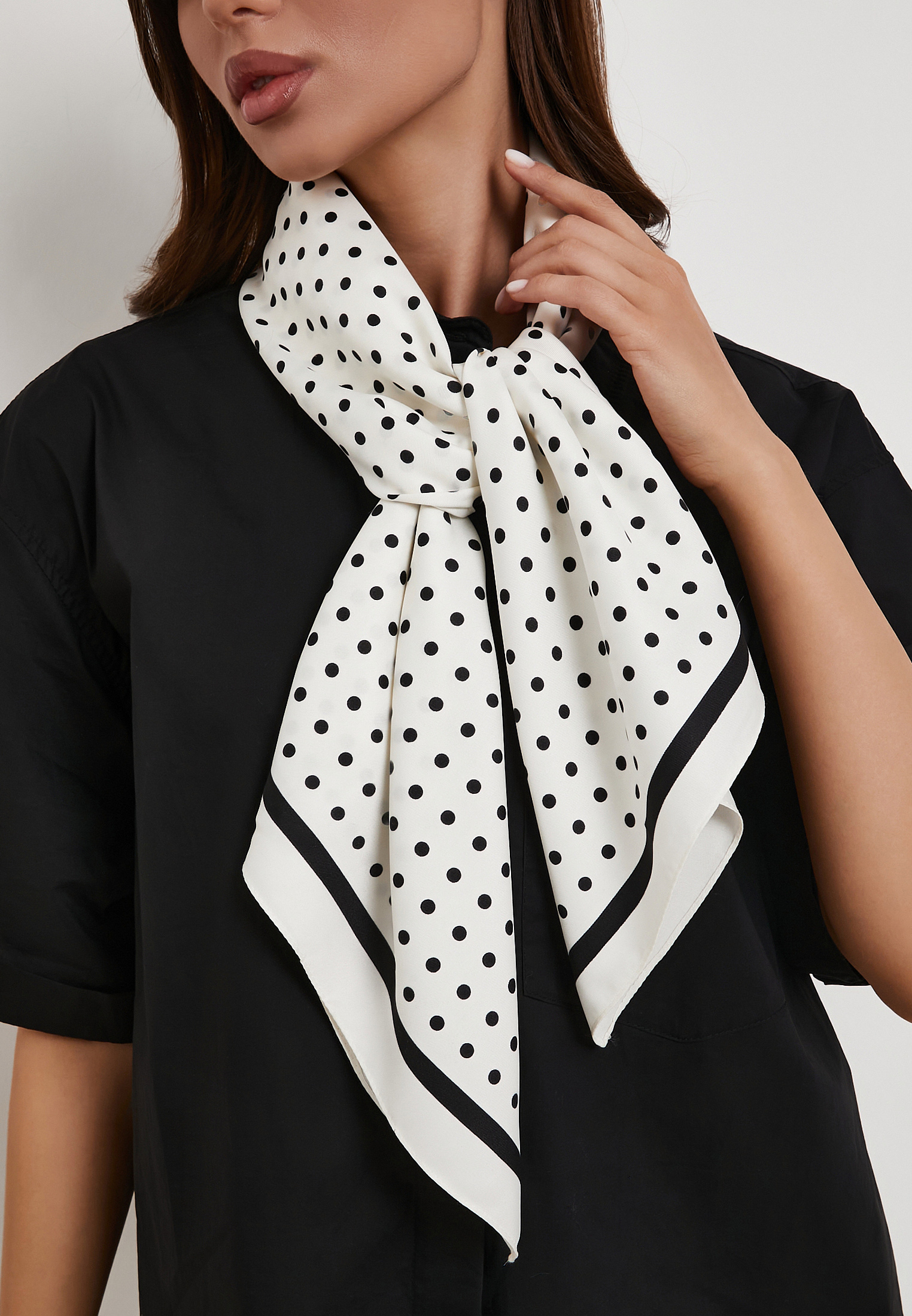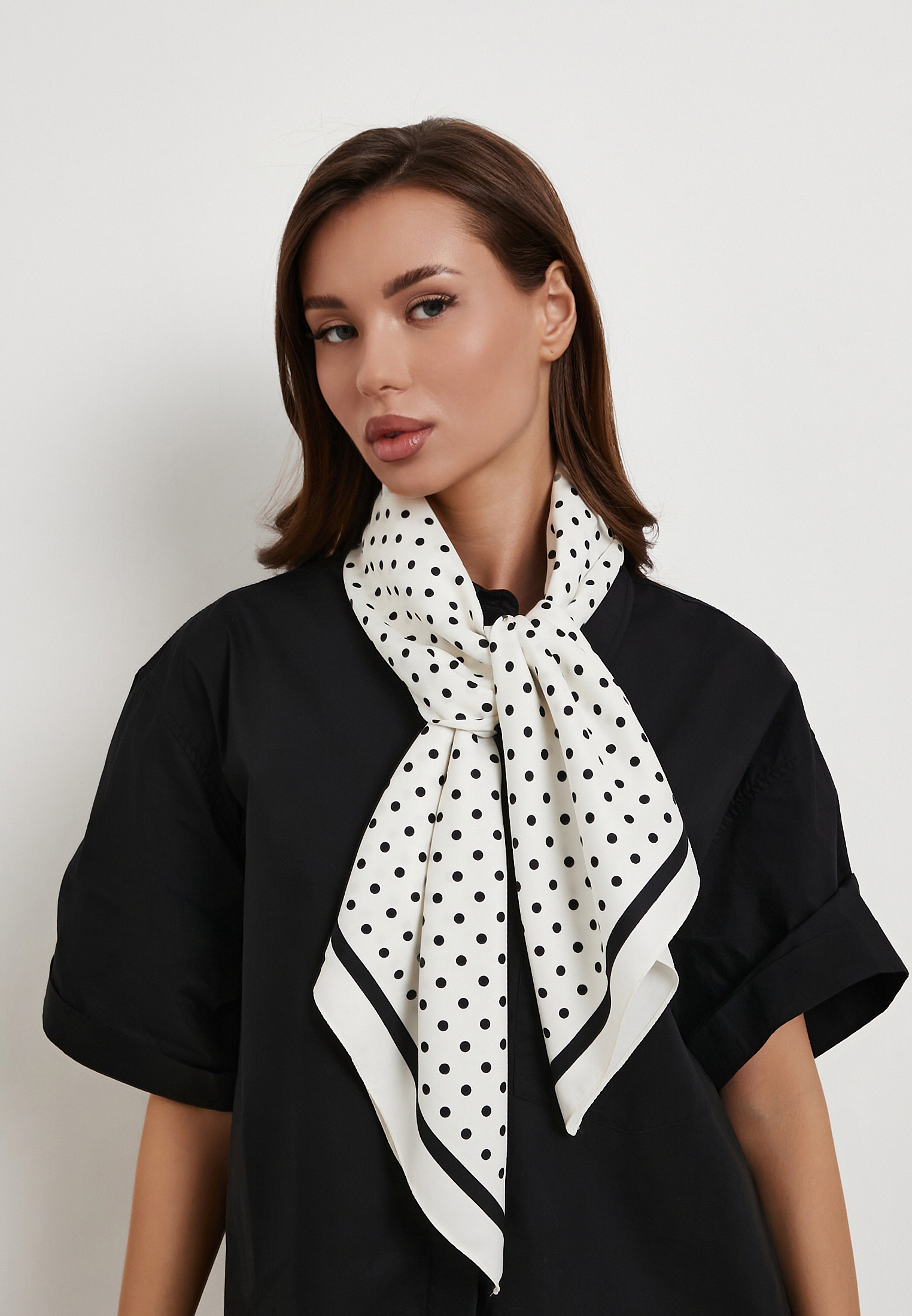 - Легкий женский платок белого цвета из полиэстера станет универсальным акцентом в повседневном гардеробе. Квадратный формат 90 × 90 см дает возможность носить его разными способами: повязывать на шею или использовать как аксессуар для сумки и волос. Уход за платком не требует особых усилий: достаточно ручной стирки и бережной глажки при температуре не выше 110 °C. Аксессуар легко комбинируется с одеждой любых оттенков, гармонично дополняя как летние образы с платьями и юбками, так и более многослойные осенние комплекты с джинсами и кардиганами, придавая образу аккуратность и элегантность.