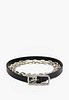 - Черный женский ремень Mascotte - лаконичный и практичный аксессуар для повседневного гардероба. Выполнен из мягкой и прочной экокожи, которая отличается долговечностью и приятной текстурой, обеспечивая комфорт при носке. Ширина 1,1 см делает ремень универсальным, аккуратно подчеркивая талию и дополняя любой образ - от джинсов до юбок и платьев. Модель дополнена металлической цепочкой, добавляющей современный акцент и стильный штрих. Этот ремень станет надежным и элегантным элементом вашего гардероба на каждый день.