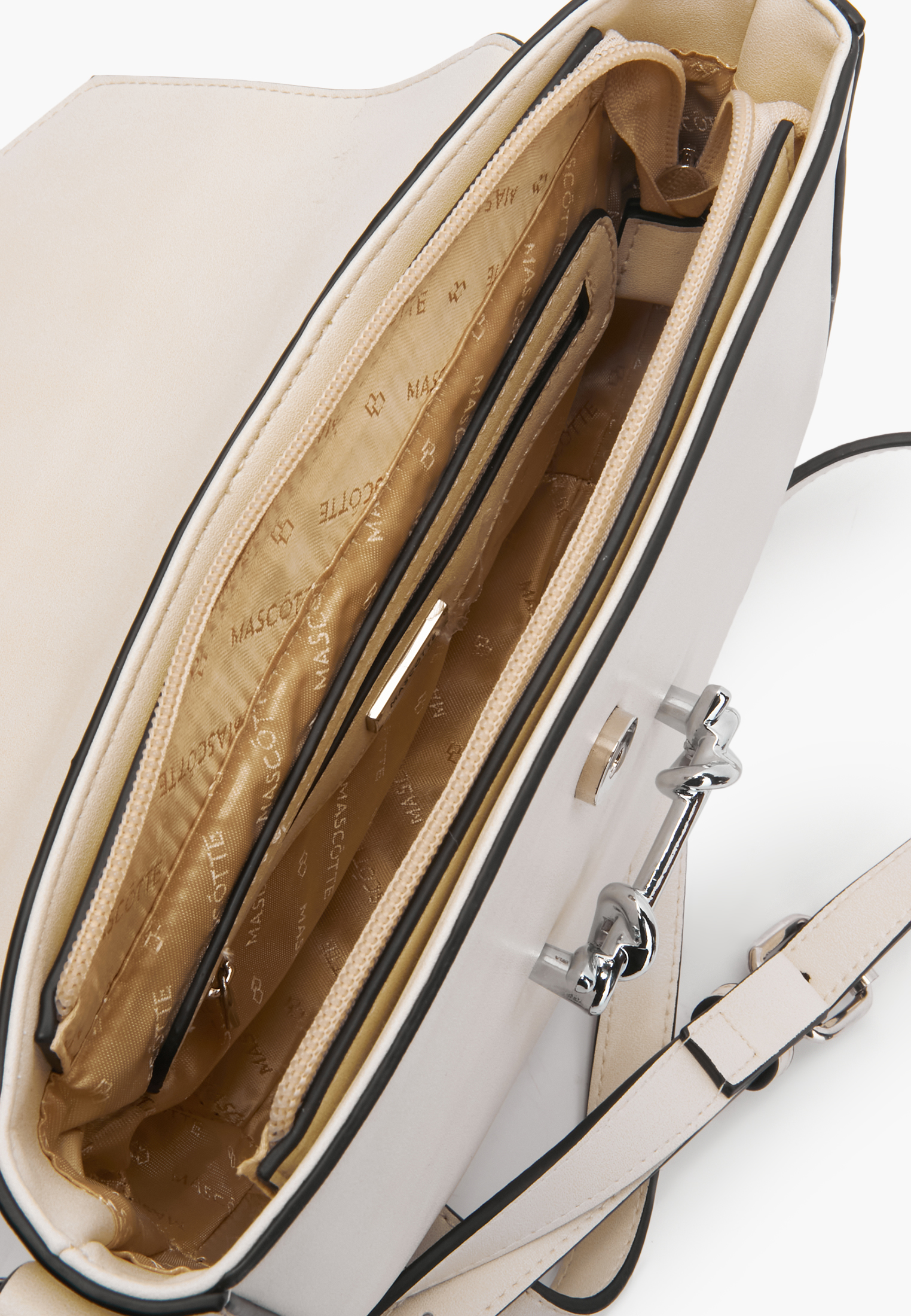 Цвет сумки скорее слоновой кости или экрю, чем ярко-белый. Качество изделия хорошее. У меня уже есть черная сумка из экокожи от Mascotte, которую я ношу две зимы, и она выглядит как новая.