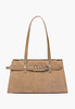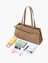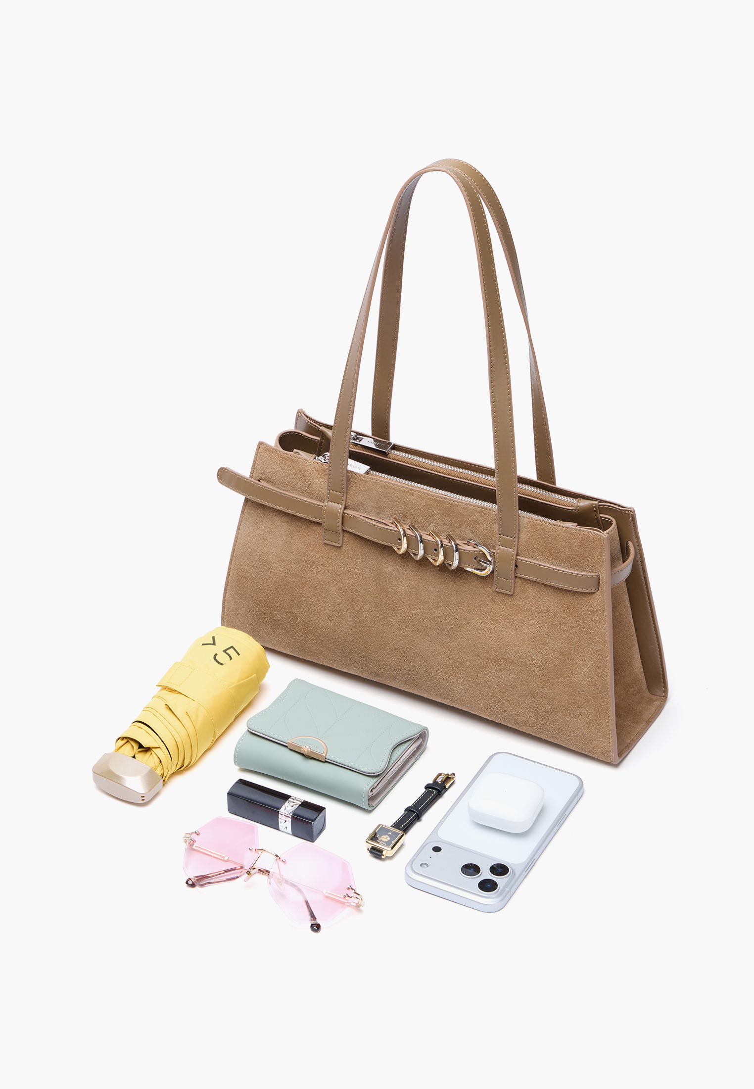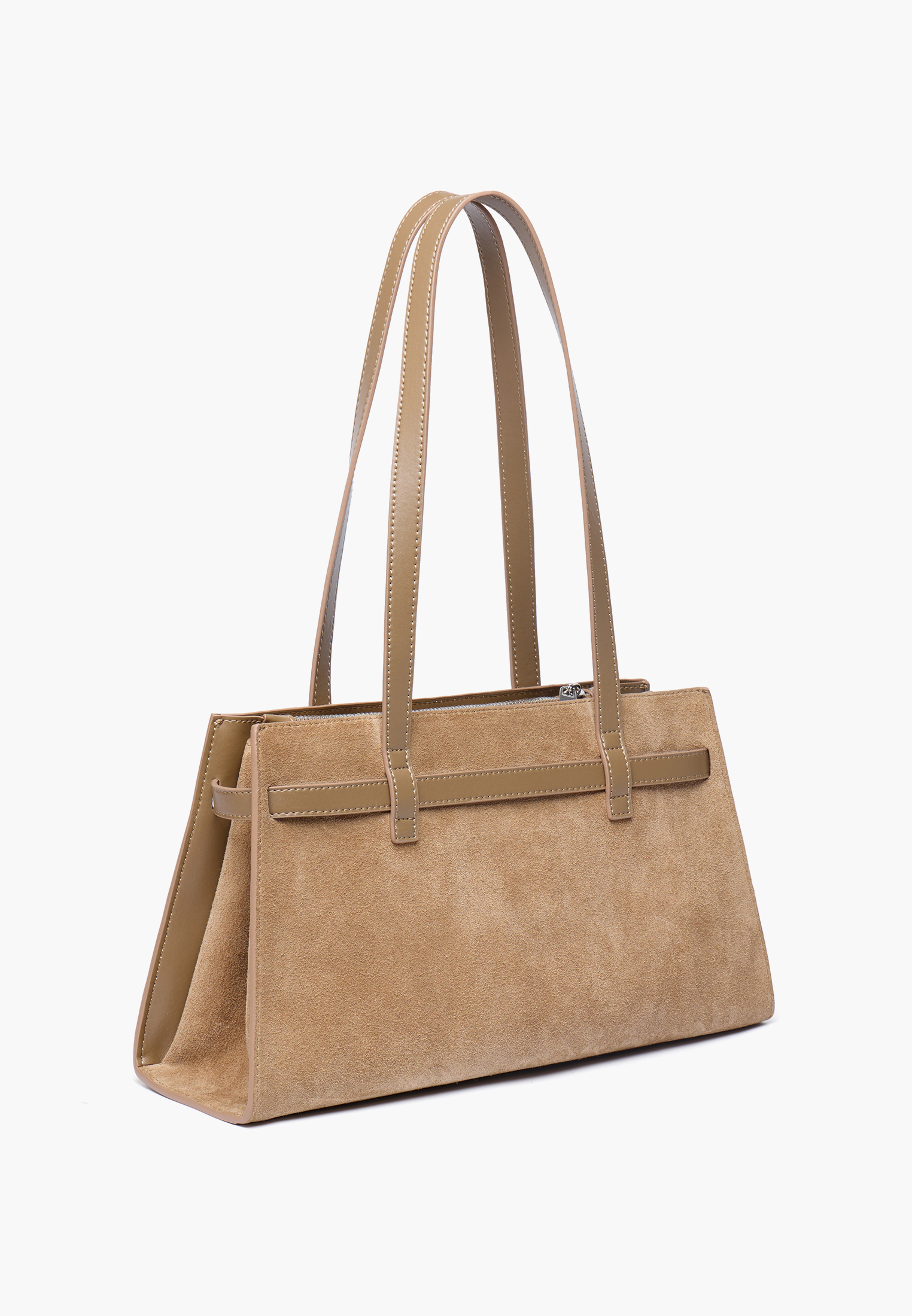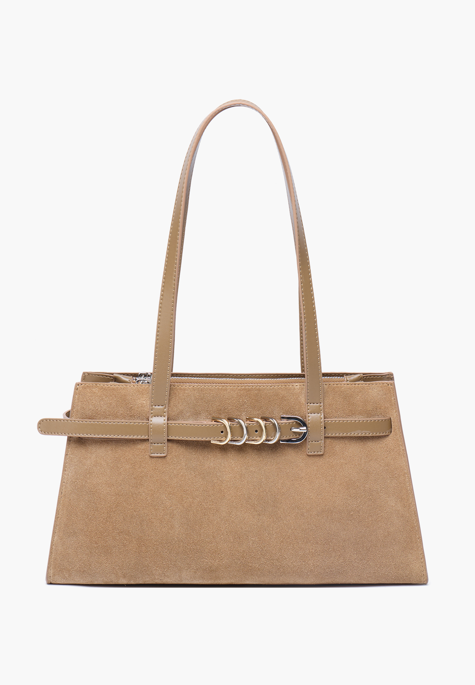 - Элегантная наплечная сумка в модельном стиле станет практичным аксессуаром для повседневных выходов и деловых встреч. Модель выполнена из мягкого натурального велюра с деталями из натуральной кожи спилка и искусственной кожи, что обеспечивает привлекательный внешний вид и долговечность. Дизайн украшен ремнем вокруг корпуса с пятью пряжками на передней части в золотом и серебряном оттенках, придающими сумке выразительный и утонченный характер. Две удобные ручки позволяют носить ее как на плече, так и в руке, а застежка на молнию надежно защищает содержимое. Внутри предусмотрены два открытых кармана для мелочей и два кармана на молнии. Размеры 10×17,5×35 см, высота с ручками 46 см - делают модель удобной и функциональной для ежедневного использования. Вес около 600 г обеспечивает комфорт в течение всего дня. Светло-коричневый цвет легко сочетается с разными образами и подчеркивает элегантность аксессуара.