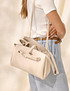 - Элегантная наплечная сумка в модельном стиле станет стильным акцентом как для повседневных образов, так и для особых случаев. Модель выполнена из мягкой и износостойкой натуральной кожи спилка молочного оттенка, дополненной деталями из искусственной кожи, которые повышают прочность и подчеркивают современный дизайн. В комплекте предусмотрена вкладная косметичка, позволяющая держать необходимые мелочи всегда под рукой. Основное отделение закрывается на молнию, серебристая фурнитура аккуратно дополняет внешний вид, а две удобные ручки позволяют носить сумку в руках или на сгибе локтя. Несъемный плечевой ремень длиной 120 см обеспечивает комфорт при ношении на плече. Внутри предусмотрены открытый карман для быстрого доступа и карман на молнии для ценных вещей. Размеры сумки 10,5×28×21 см делают модель компактной и удобной для ежедневного использования, а легкий вес 700 г добавляет комфорта в течение дня. Сумка также представлена в классическом черном цвете.