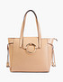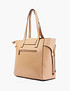 - Сумка-шоппер универсальна и практична, модель дополнена изящной фурнитурой для стилизации образа и представлена в бежевом и коричневом цвете на выбор. Размеры: 44 см в длину, 15 см в ширину и 32 см в высоту (56 см с учетом ручек). Выполнена из мягкой искусственной кожи и текстильной подкладки. Внутри имеет одно общее отделение с двумя карманами и дополнительным для мобильного телефона, а также с двумя карманами с внешней стороны.