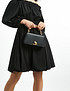 - Трендовая и компактная сумка топ-хэндл из кожи спилок. Сдержанный дизайн в сочетании с массивной цепочкой и лаконичным замком придают шарм и вызывают неподдельное восхищение. Размеры: длина 23,5 см, ширина 7 см, высота без учета ручки 12 см. В комплекте прилагается съемный ремень длиной 117 см. Внутри для удобства предусмотрены 2 кармана: прорезной на молнии и накладной открытый. Модель представлена в черном, зеленом и бежево-пудровом цветах на выбор.