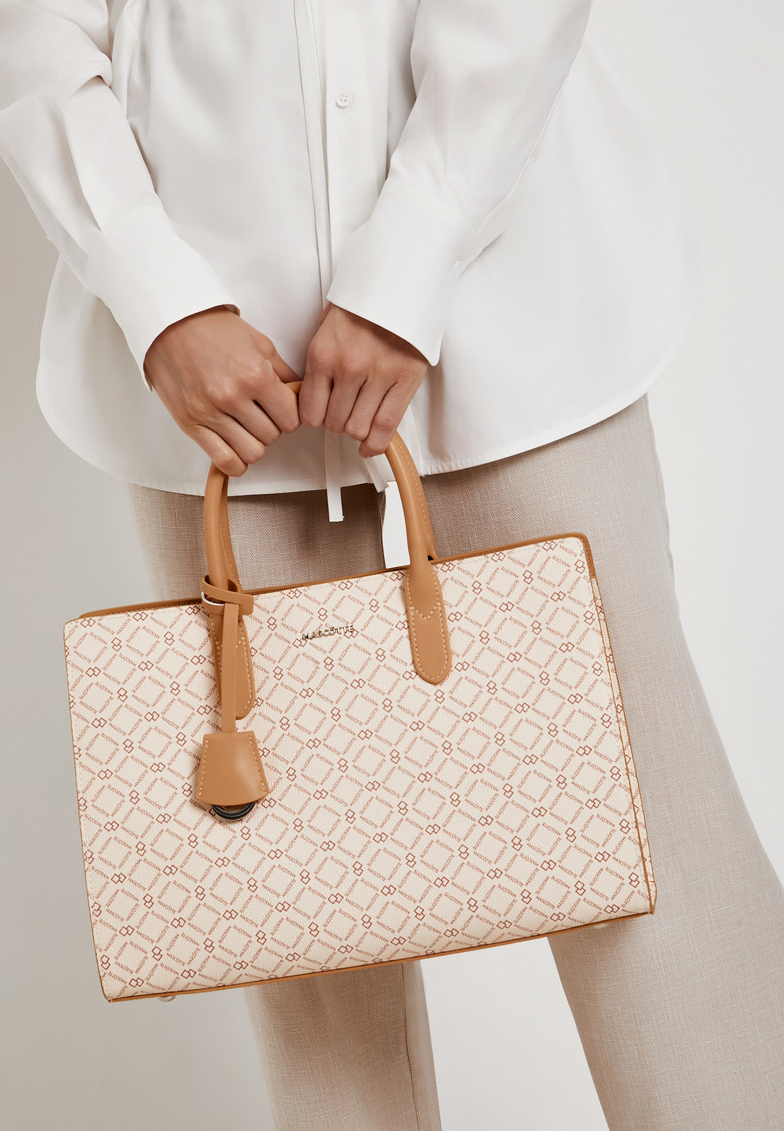 - Элегантная женская сумка-топхэндл в молочном цвете станет стильным и практичным аксессуаром для повседневного гардероба. Модель выполнена из качественной экокожи с фирменным геометрическим принтом Mascotte, который придает ей современный и выразительный вид. Сумка оснащена двумя короткими ручками и съемным регулируемым плечевым ремнем длиной 127 см, что позволяет носить ее как в руке, так и на плече. Компактные размеры - 24×35×12 см и легкий вес всего 0,9 кг обеспечивают комфортное использование в течение дня, а высота с ручками 37 см гарантирует удобную посадку на руке. Внутри предусмотрено основное отделение с карманом для ценных вещей, а магнитная застежка обеспечивает быстрый доступ к содержимому и безопасность хранения. Такая сумка-топхэндл идеально дополнит как деловой, так и повседневный образ, сочетая стиль и функциональность.