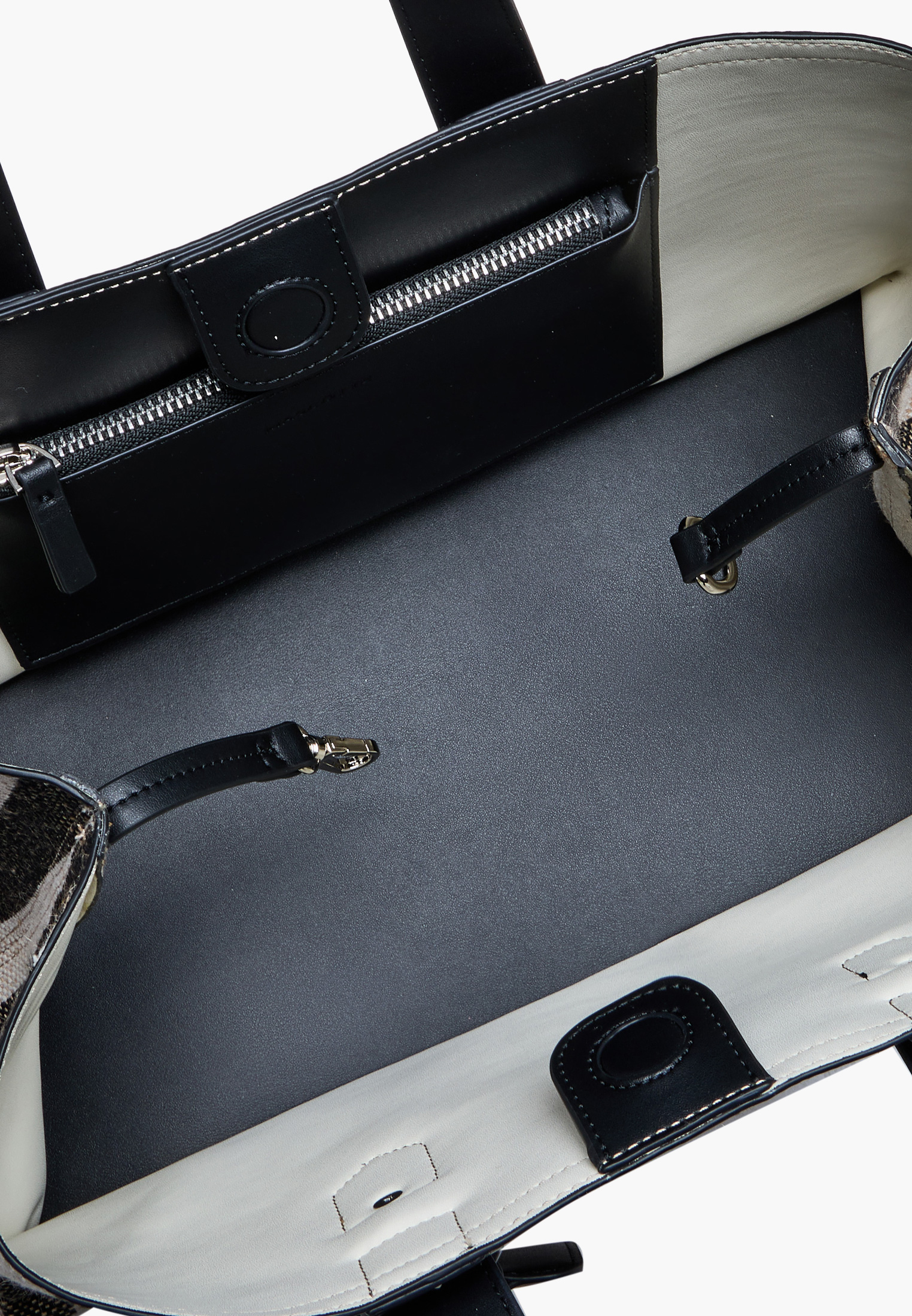 - Элегантная черно-белая сумка-топхэндл Mascotte станет стильным и практичным дополнением летнего гардероба. Модель выполнена из легкого текстиля с элементами искусственной кожи, что придает изделию прочность и современный вид. Вертикальная полоска добавляет оригинальности и делает сумку универсальной для повседневных выходов. Две удобные ручки из гладкой кожи позволяют носить сумку на плече или в руках, подстраиваясь под ваши предпочтения. Дизайн модели дополнен съемными декоративными брелками, подчеркивающими индивидуальность образа. Предусмотрен внутренний карман на молнии и магнитная застежка, которая обеспечивает быстрый доступ к содержимому. Компактные размеры 22×31×15 см (высота с ручками 38 см) и небольшой вес сумки всего 750 г делает ее легкой и удобной для ежедневного использования.
