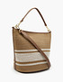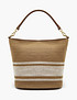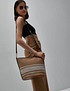 - Элегантная и лаконичная сумка-тоут из текстиля выполнена в пляжной стилистике. Размеры модели составляют 27 см в высоту, 18 см в ширину и 36 см в длину. Внутри расположено одно общее отделение и три кармана. В комплекте идет ремень длиной 120 см для тех, кто привык носить сумку на плече.