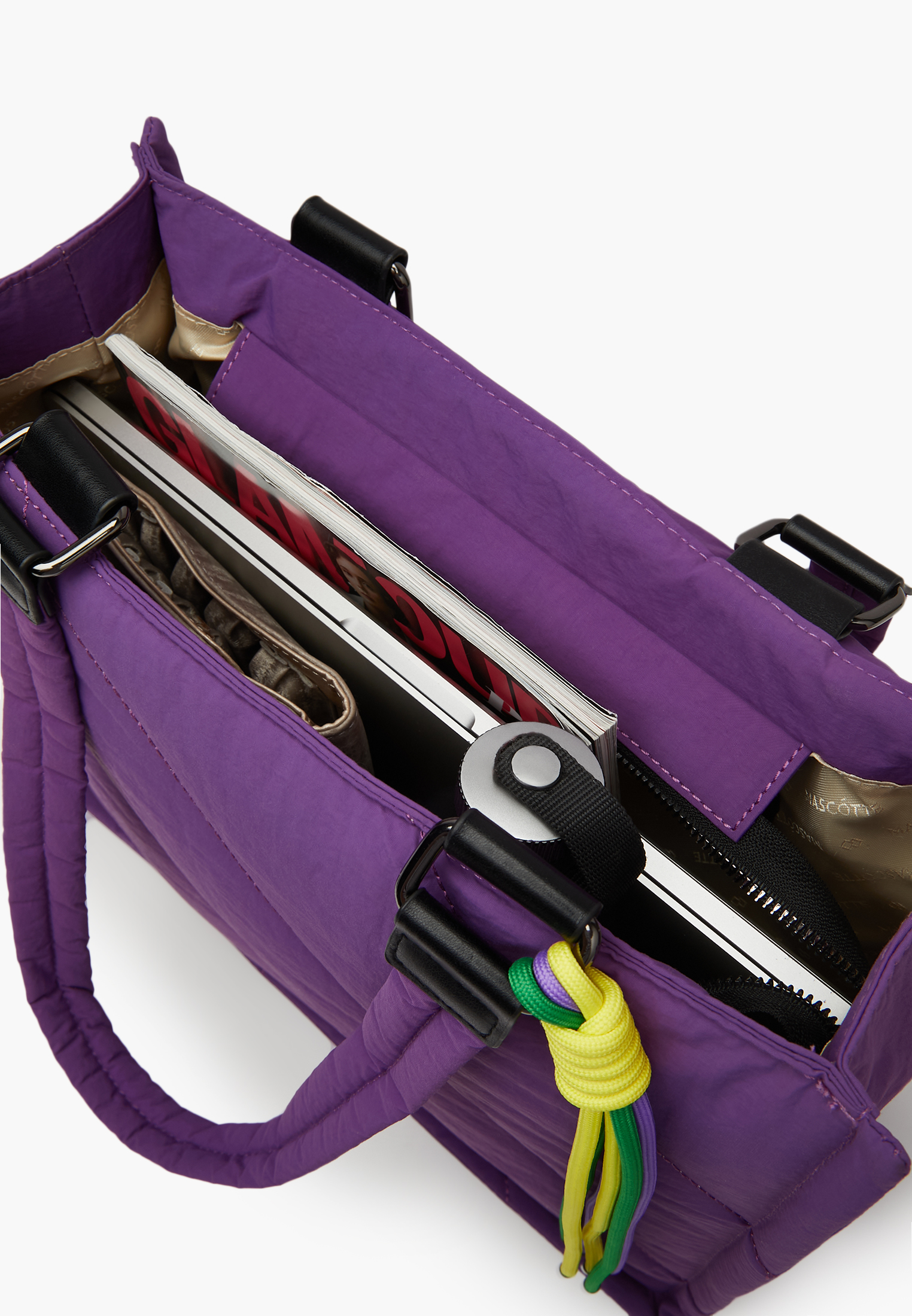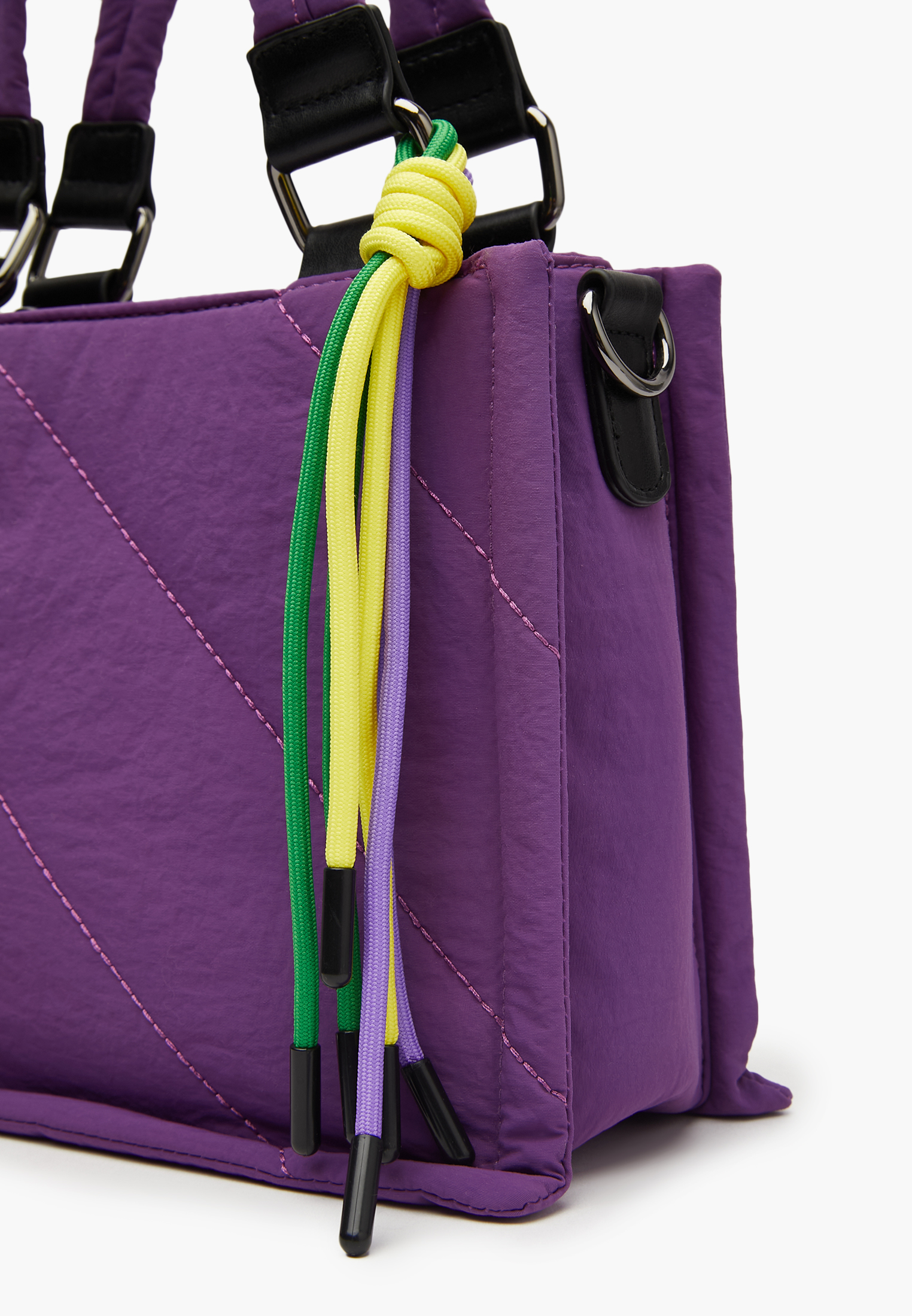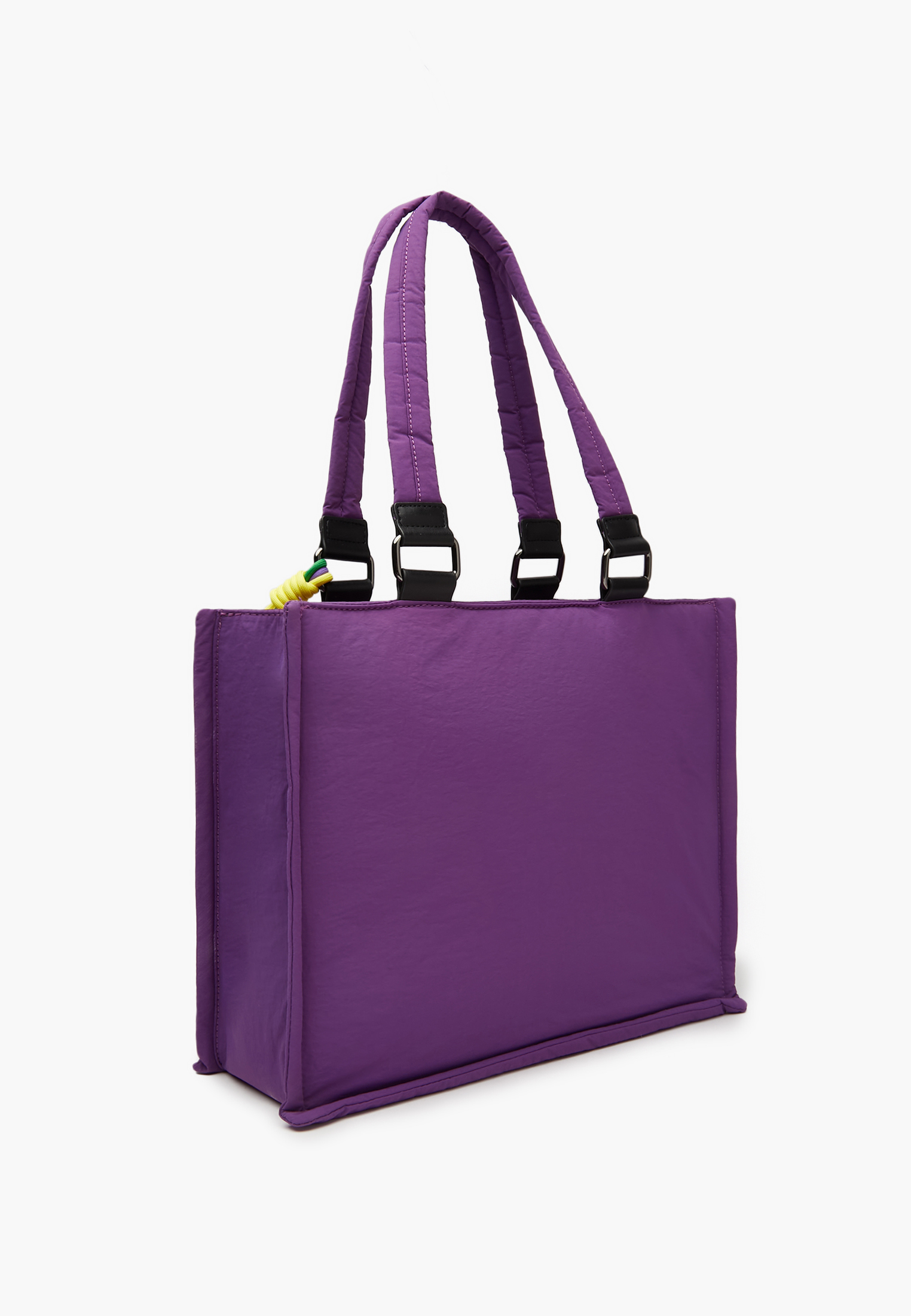 - Женская стильная сумка выполнена из качественного текстиля и дополнена ярким декором. Она не только выглядит эффектно, но и очень практична, в нее легко поместится небольшой ноутбук, внутри также расположено два открытых кармана и один на молнии, для удобной организации вещей. Такая сумка отлично подойдет для повседневного образа и добавит ему изюминку. Представлена в черном и фиолетовом цвете на выбор. Размеры модели составляют: 35 см в длину, 39 см в высоту(без учета ручки) и 16 см в ширину, вмещает формат А4.