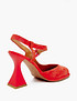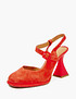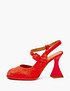 - Эти эффектные босоножки из новой коллекции непременно привлекут внимание. Верх выполнен из мягкого велюра, а подклад и стелька – из натуральной кожи шевро, что придает им особо благородный вид. Главной особенностью модели является клеш-каблук высотой 11,8 см. Его форма визуально удлиняет силуэт и подчеркивает изгибы стопы. Подошва из тунита с конструктивными особенностями обеспечивает изделию гибкость. Аккуратные ремешки надежно фиксируют ногу при ходьбе и дополняют образ. Босоножки представлены в двух цветах: ярком красном и нейтральном бежевом.