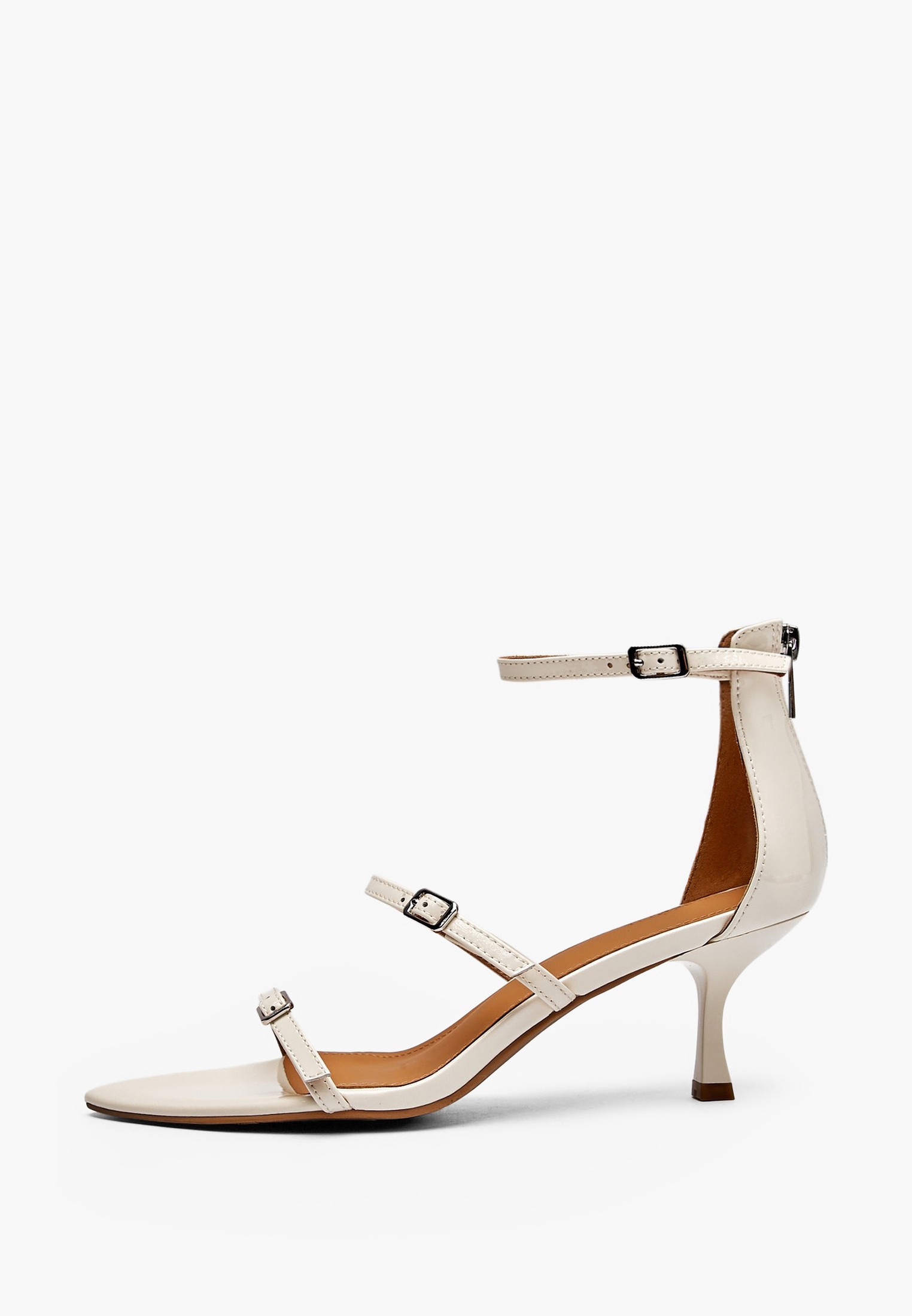 - Молочные женские босоножки Mascotte выполнены из глянцевой лакированной кожи, которая придает модели утонченный блеск и элегантный вид. Подкладка и стелька из мягкой натуральной кожи обеспечивают комфорт, приятные тактильные ощущения. Средний каблук высотой 6,5 см формы «рюмочка» визуально вытягивает силуэт и сохраняет устойчивость при ходьбе. Закрытая пяточная часть с молнией и металлической фурнитурой облегчает надевание и надежно фиксирует стопу, а регулируемые ремешки с аккуратными пряжками позволяют идеально подогнать обувь по ноге. Острый носок подчеркивает изящность дизайна, делая босоножки Mascotte отличным выбором как для вечерних выходов, так и для стильных деловых образов. Модель также доступна в классическом черном цвете.
