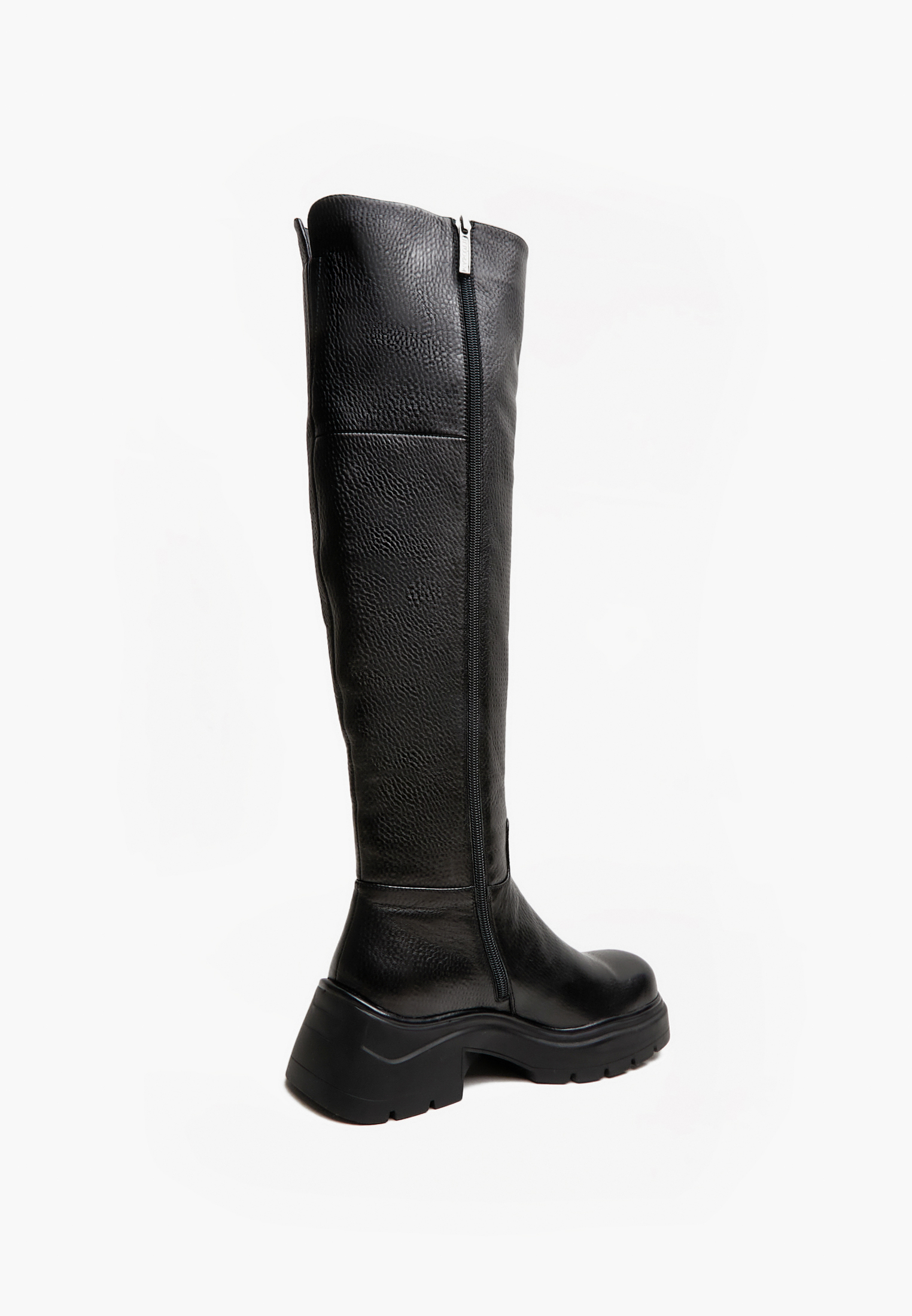 - 100% хит сезона - женские высокие ботфорты из мягкой натуральной кожи станут главным героем вашего зимнего образа. Подклад пары специально утеплен натуральным мехом с дополнительной теплоизоляцией пяточной зоны, что позволит носить модель зимой при температуре 0/-15 градусов. Высота голенища составляет 50 см. Объемная подошва из термопластичной резины с каблуком общей высотой 6,5 см и квадратный приподнятый мыс создадут особо современный и трендовый вид.