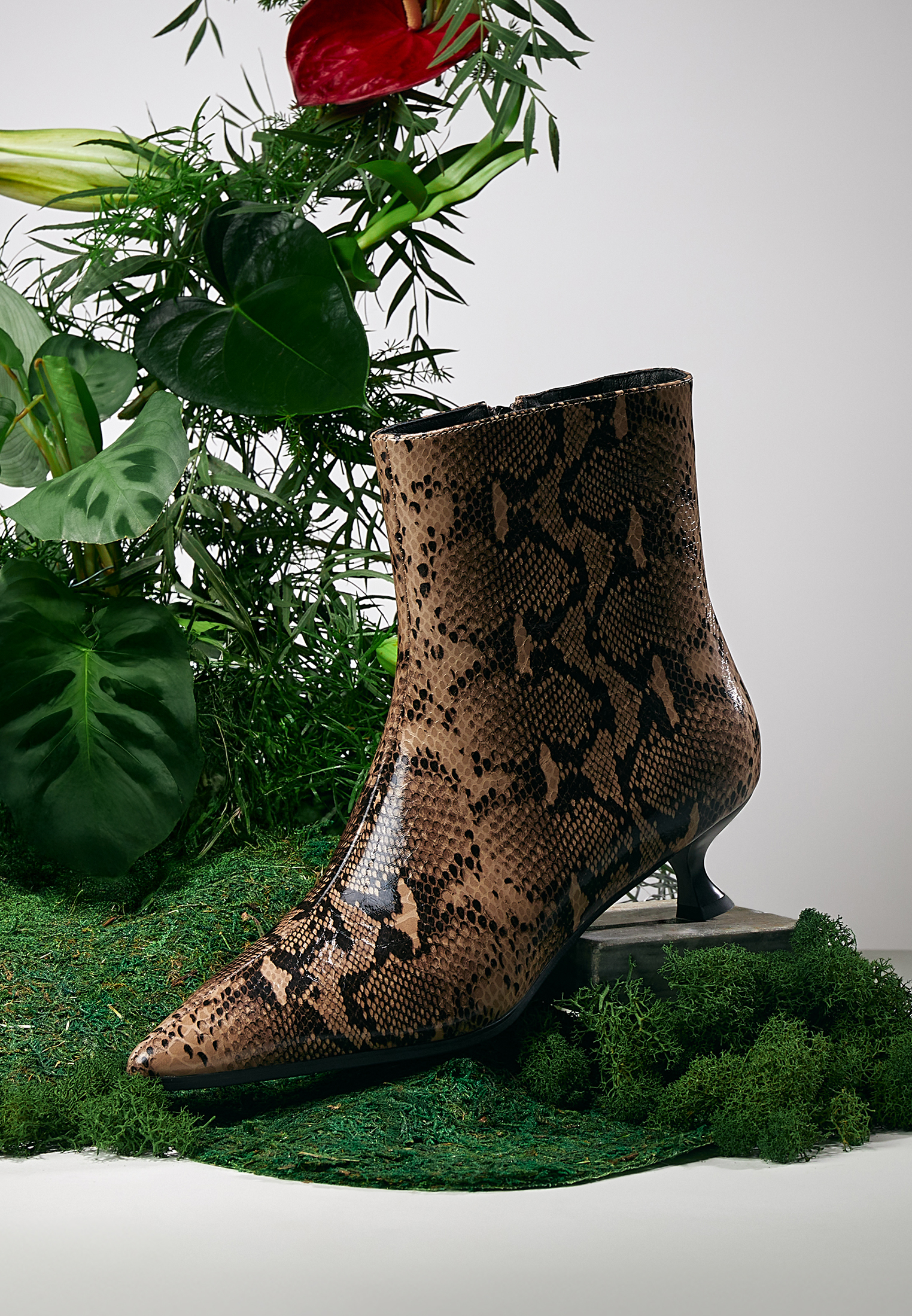 Женские ботильоны со змеиным принтом