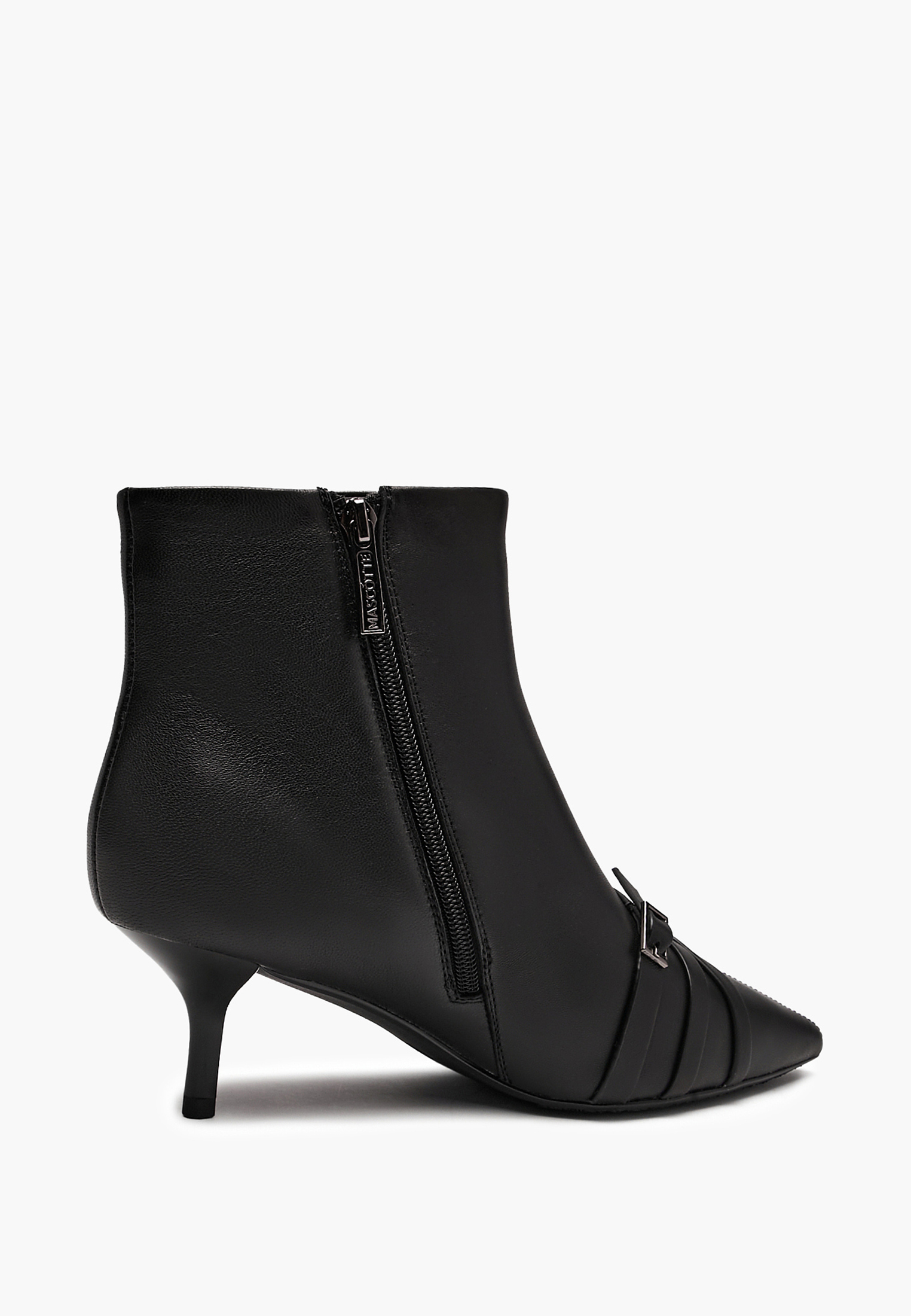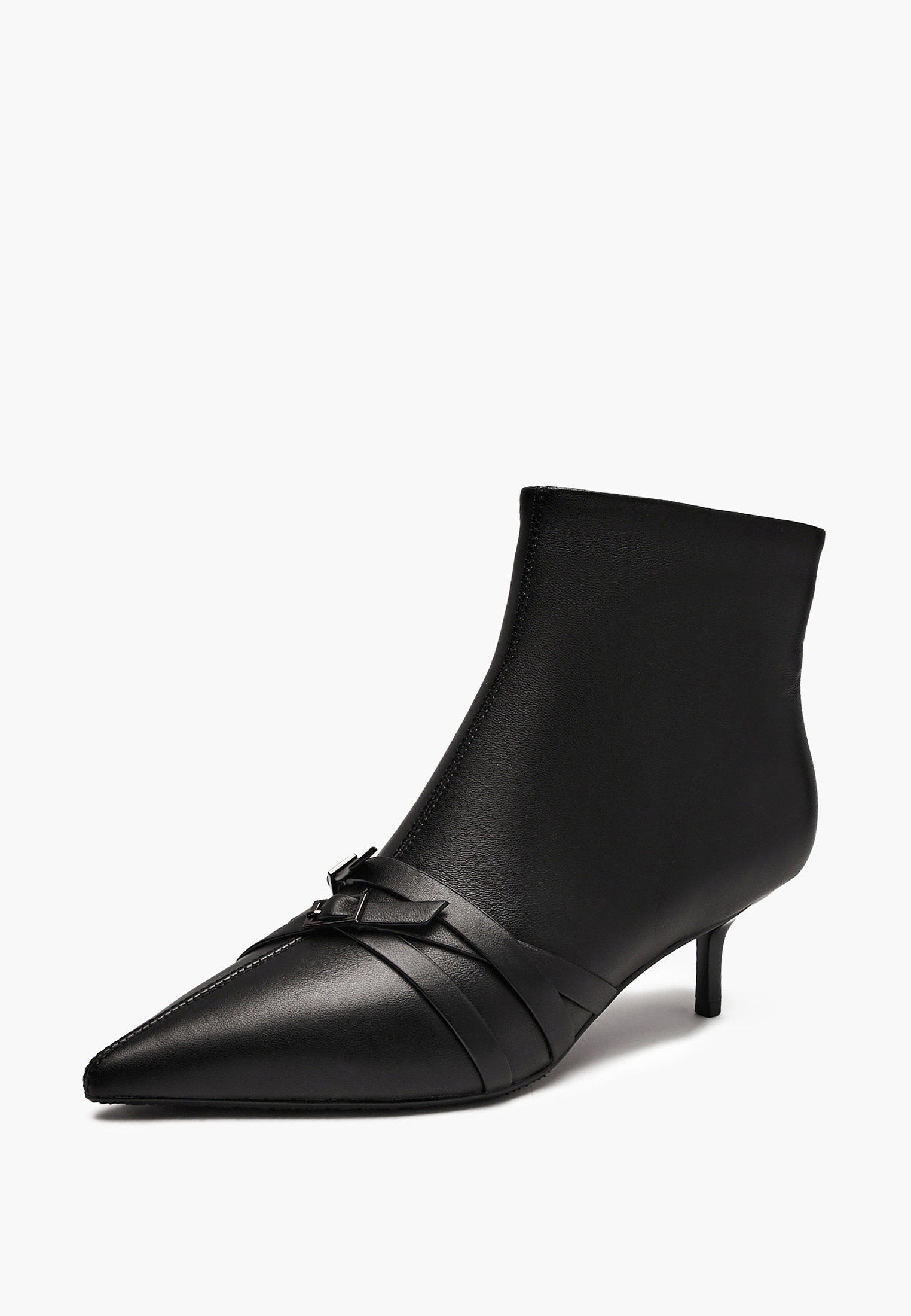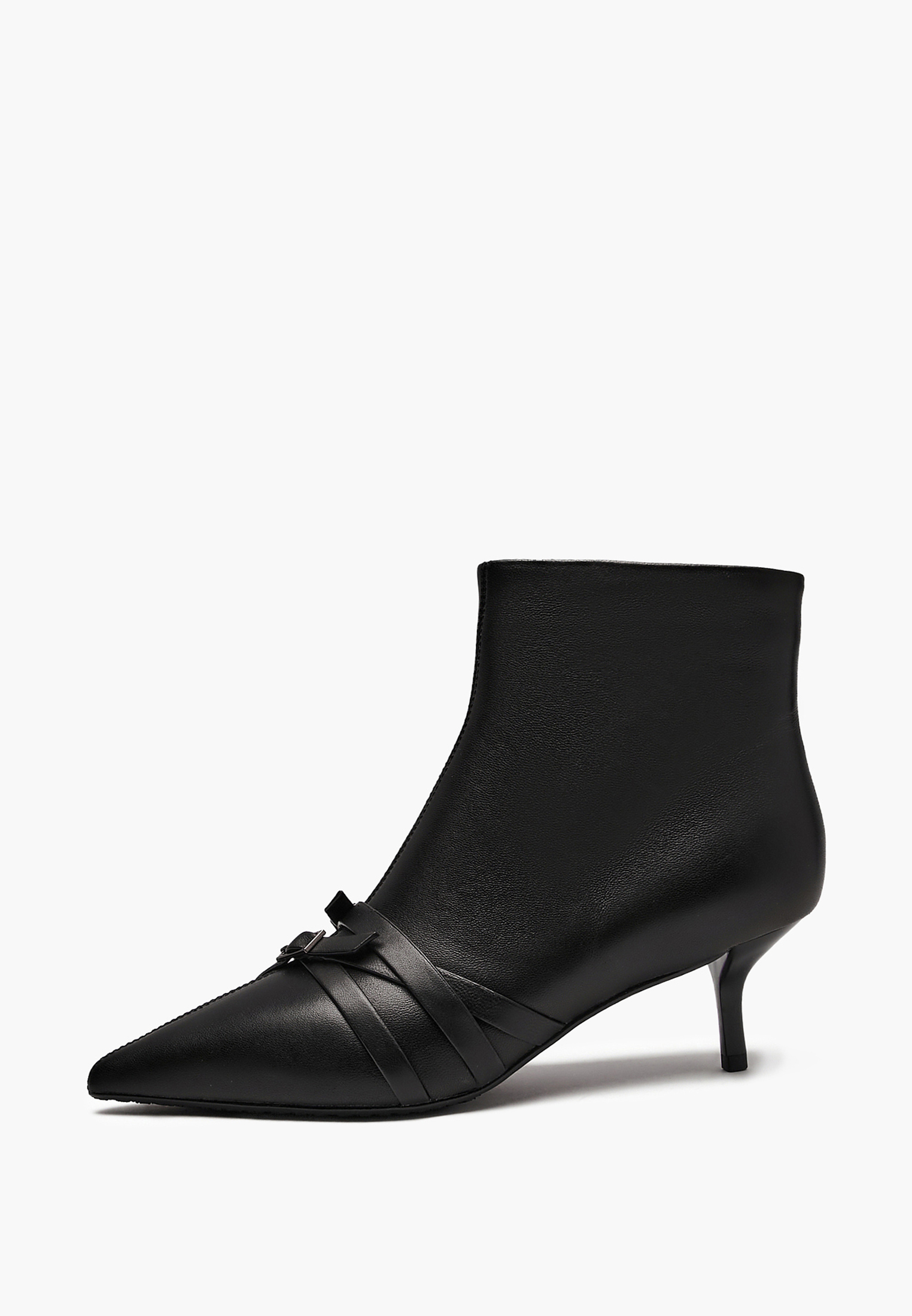 - Женские ботильоны Mascotte – стильная модель в классическом чёрном цвете. Элегантные ремешки с металлическими пряжками на носочной части придают модели выразительность и современный характер. Широкое голенище обеспечивает комфортную посадку и создаёт актуальный силуэт. Заострённый нос визуально удлиняет ногу, а каблук «рюмочка» высотой 6 см будет удобным для повседневной носки. Выполнены из натуральной кожи с мягкой подкладкой из байки, которая обеспечивает тепло в прохладную погоду.