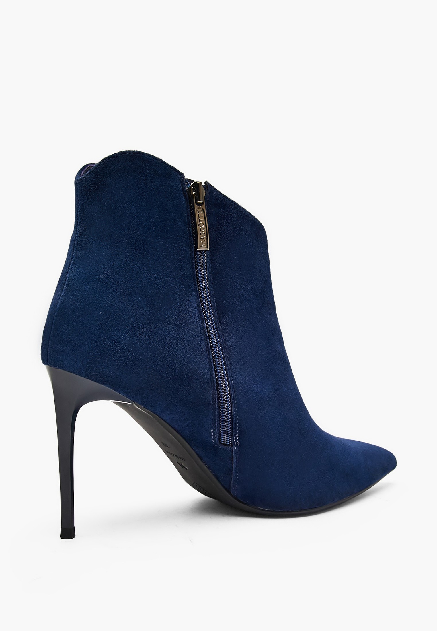 - Синие женские ботильоны Mascotte подчеркнут изысканный стиль и добавят элегантности вашему образу. Выполнены из мягкого велюра, подкладка – из байки. Модель имеет острый нос, который визуально удлиняет ногу, а скошенное широкое голенище создает выразительный акцент. Высокий каблук высотой 9,8 см и резиновая подошва обеспечат устойчивость и долговечность даже при активной носке. Эти стильные ботильоны станут идеальным дополнением к вашему гардеробу, удачно сочетая актуальный дизайн и безупречное качество исполнения. Застегиваются на молнию сбоку.