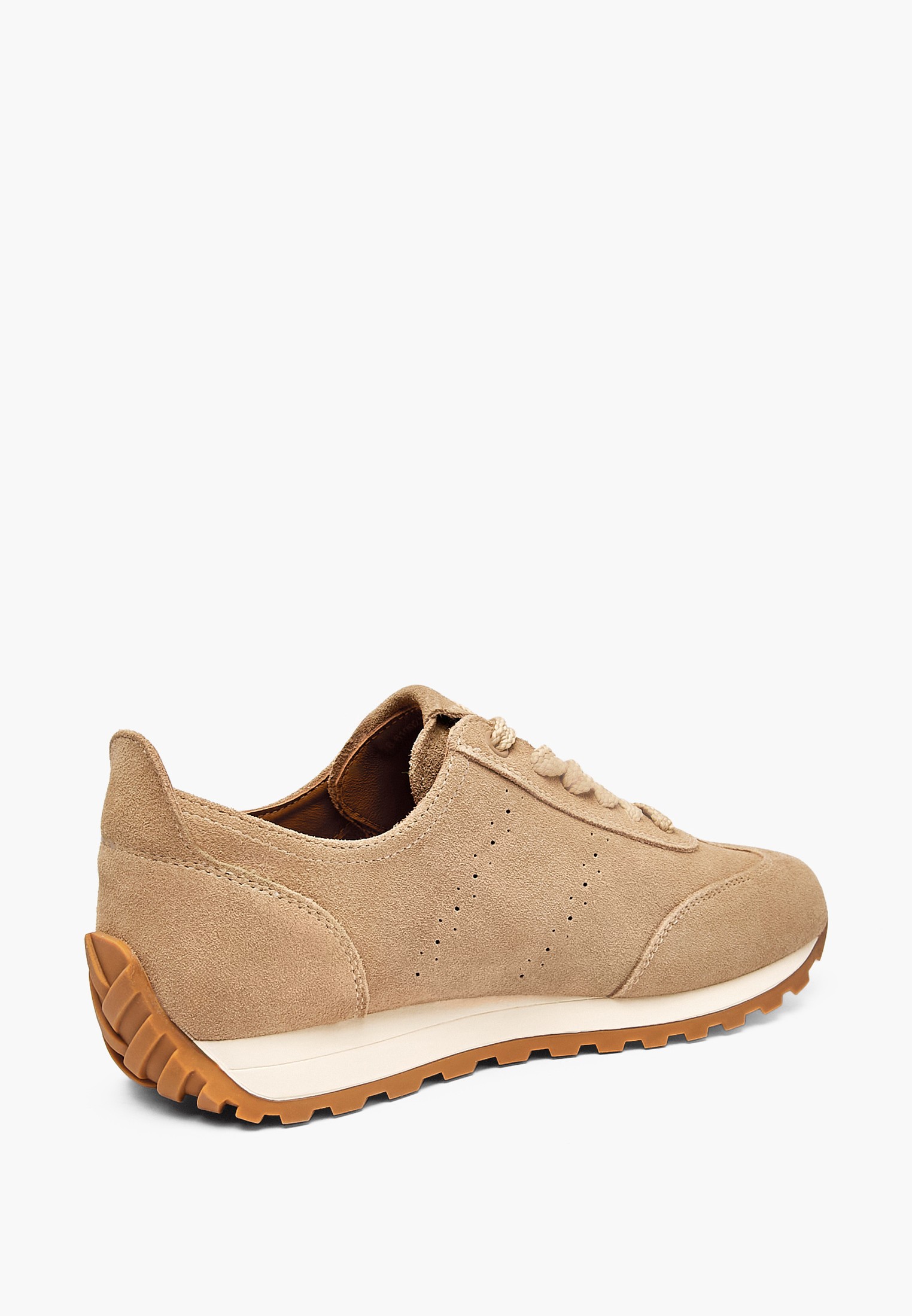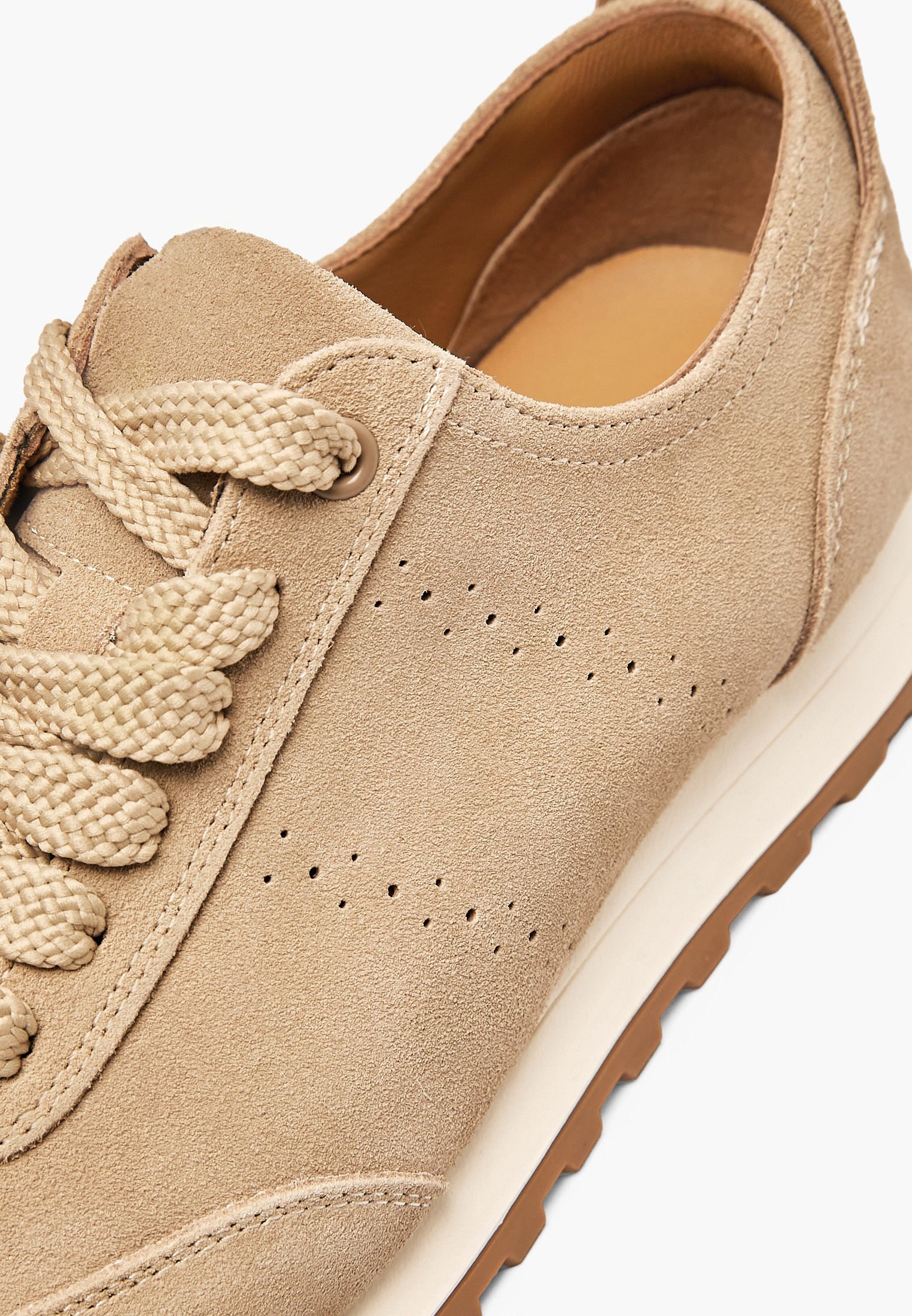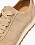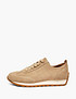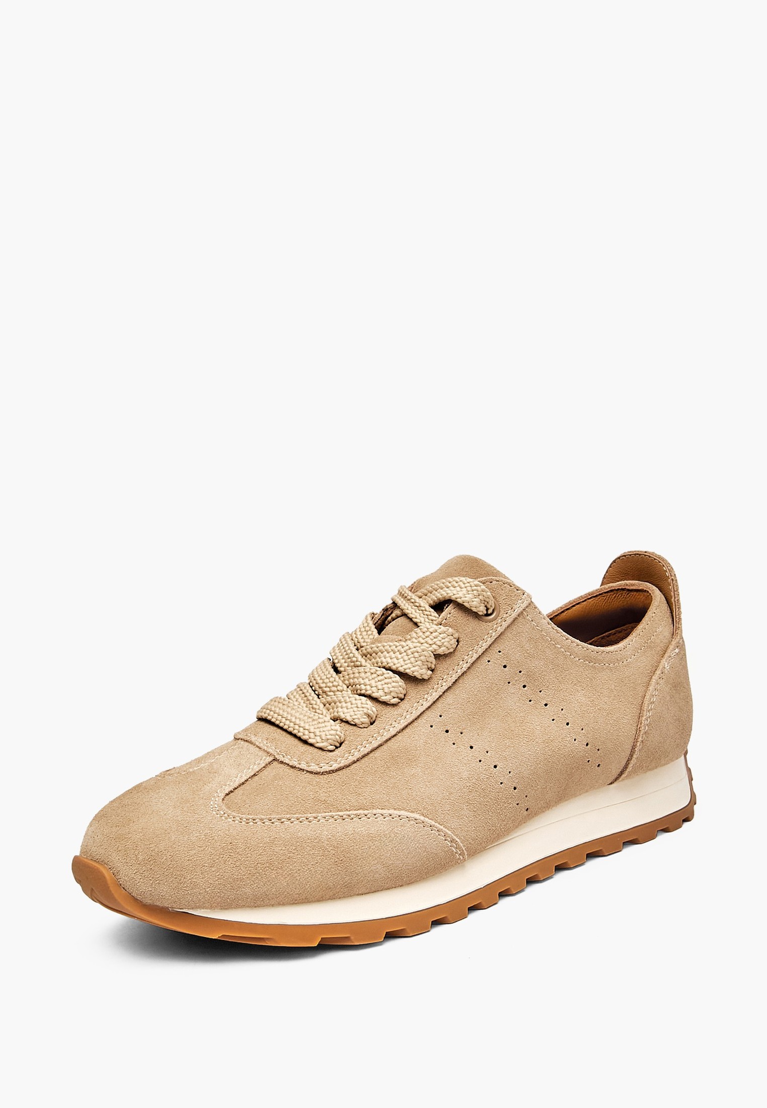- Бежевые женские кроссовки Mascotte выполнены из мягкого натурального велюра с приятной бархатистой текстурой и высокой износостойкостью. Подкладка из дышащей микрофибры в сочетании с кожаной стелькой поддерживает комфортный микроклимат и обеспечивает удобство даже в теплую погоду. Специальная стелька равномерно распределяет нагрузку на стопу, снижая усталость при длительной ходьбе и активном ритме дня. Лаконичный минималистичный дизайн делает модель универсальной - кроссовки гармонично дополнят как повседневные, так и спортивные образы. Удобный задник обеспечивает дополнительный комфорт, в том числе во время вождения, а аккуратная перфорация придает дизайну легкость и улучшает воздухопроницаемость. Модель также представлена в классическом коричневом цвете.
