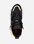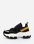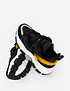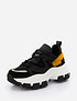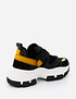 - Массивные женские кроссовки на высокой подошве с акцентными вставками. Комбинация фактур и удобная система шнуровки сделают их незаменимыми для ежедневных прогулок. А короткая куртка уравновесит их некоторую внешнюю тяжеловесность и сделает ваш образ гармоничным и более стройным.