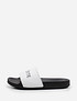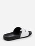 - Брендовые слайдеры из искусственной кожи дополнены специальным преимуществом: легкой подошвой. Благодаря использованию облегченной резины она обладает высокими амортизирующими свойствами, снижает нагрузку на стопу и создает комфорт при ходьбе. Представлены в черном и белом цвете и подойдут для создания парных образов для женщин и мужчин.