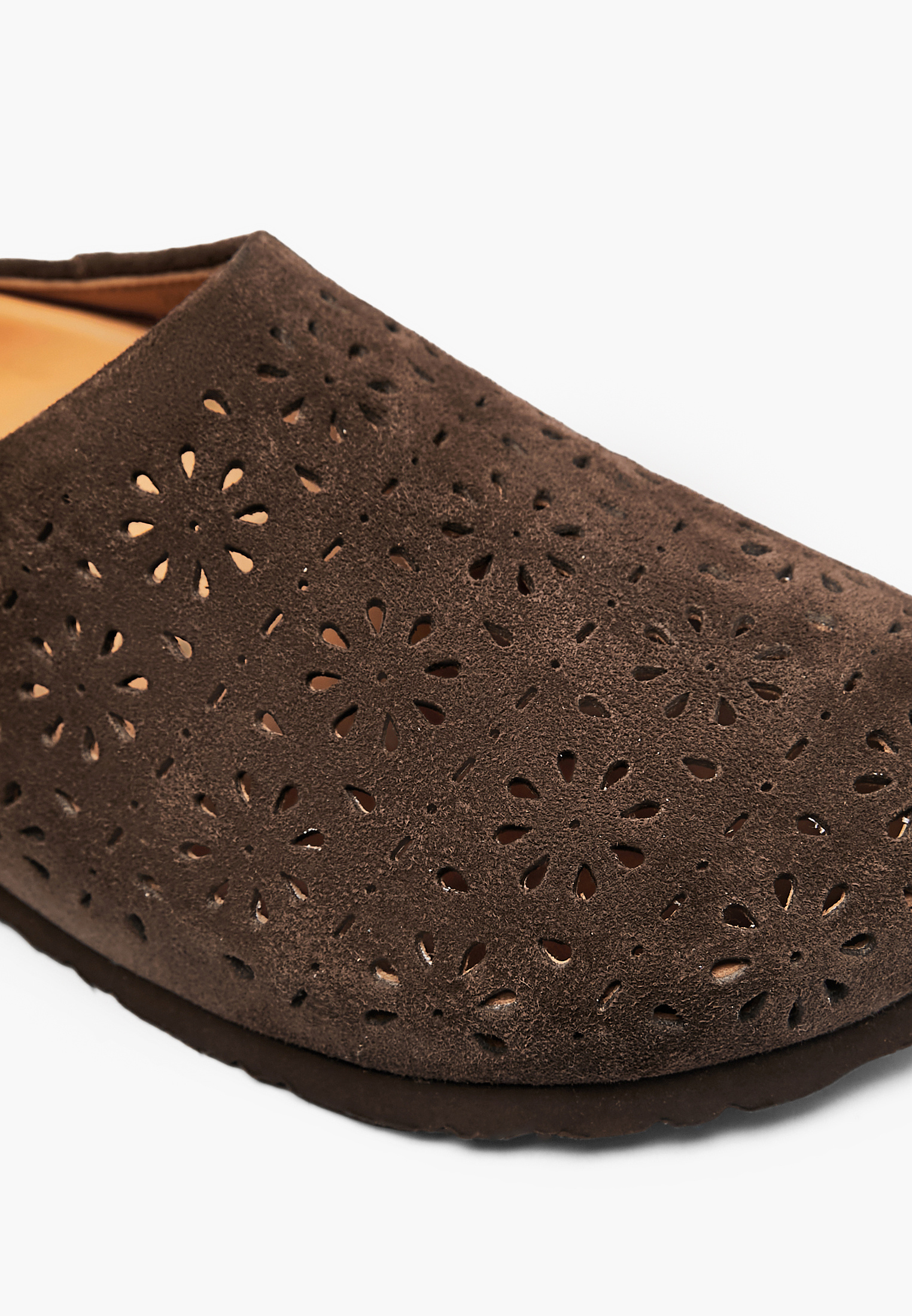 - Коричневые женские сабо Mascotte из натурального велюра - это гармоничное сочетание элегантности и удобства для повседневной носки. Мягкий велюровый верх приятен на ощупь, а подкладка и стелька из натуральной кожи обеспечивают комфорт и оптимальный микроклимат для стопы. Перфорация в виде цветочных узоров не только придает обуви легкость и изысканность, но и улучшает вентиляцию. Специальная стелька равномерно распределяет нагрузку, снижая усталость даже при длительных прогулках. Эти сабо Mascotte станут стильным дополнением к летним образам, объединяя практичность и утонченный дизайн. Модель также доступна в бежевом цвете.