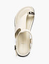 - Женские сандалии Mascotte молочного цвета выполнены из натуральной кожи с оригинальной фактурой легкой мятости, которая придает модели утонченный и выразительный характер. Подкладка и стелька из натуральной кожи обеспечивают приятные тактильные ощущения и комфорт при носке. Элегантное декоративное украшение на пальцевой части добавляет образу изысканный акцент. Сандалии имеют петлю для большого пальца и фиксируются регулируемым ремешком с пряжкой вокруг пятки, обеспечивая удобную и надежную посадку. Эта стильная пара станет отличным дополнением к летним образам. Модель также доступна в классическом черном цвете.