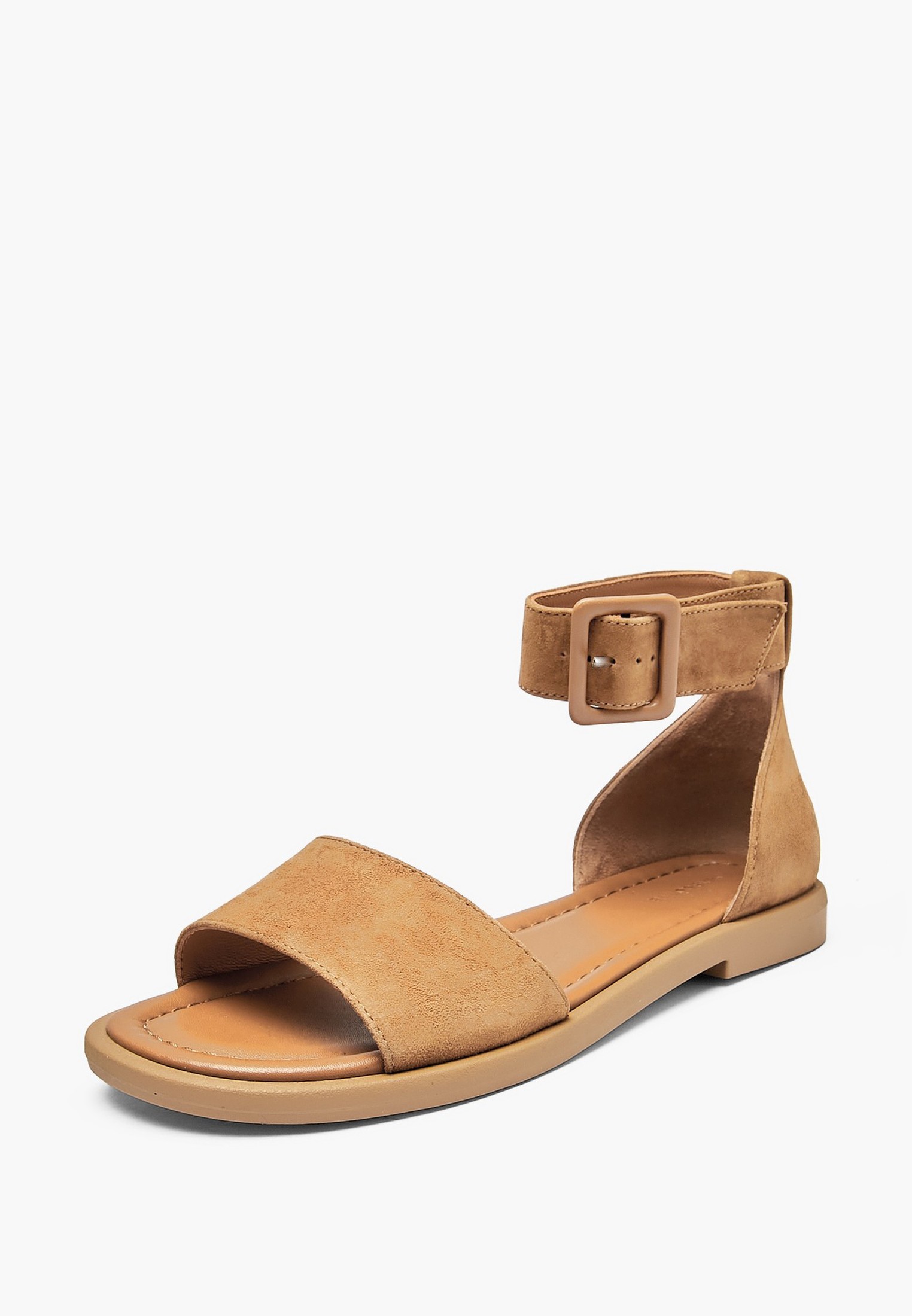 - Женские сандалии Mascotte в рыжем цвете выполнены из мягкого натурального велюра, обеспечивая комфорт и изысканный внешний вид. Кожаная подкладка гарантирует приятные ощущения при носке и долговечность модели. Закрытая пяточная часть надежно фиксирует стопу, предотвращая натирание, а регулируемый ремешок на щиколотке позволяет точно подогнать обувь по ноге. Модель с округлым носком идеально подойдет для повседневных прогулок и летних путешествий, сочетая удобство и стиль. Сандалии также доступны в нежном молочном цвете.