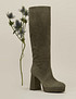 - Идеальная пара сапог из мягкого велюра станет вашей счастливой обувью на осенний период. Подклад и стелька выполнены из теплой байки для комфортных выходов при температуре +5/-10 градусов. Устойчивый каблук вместе с платформой общей высотой 9,5 см сделает силуэт максимально женственным и мягким. Модель изготовлена с использованием комбинации лучших традиций ручного труда и передовых технологий производства. В процессе производства моделей нашей премиальной линейки используются только лучшие материалы и фурнитура для всех деталей. Представлены в черном, фиолетовом и цвете хаки.