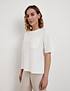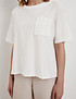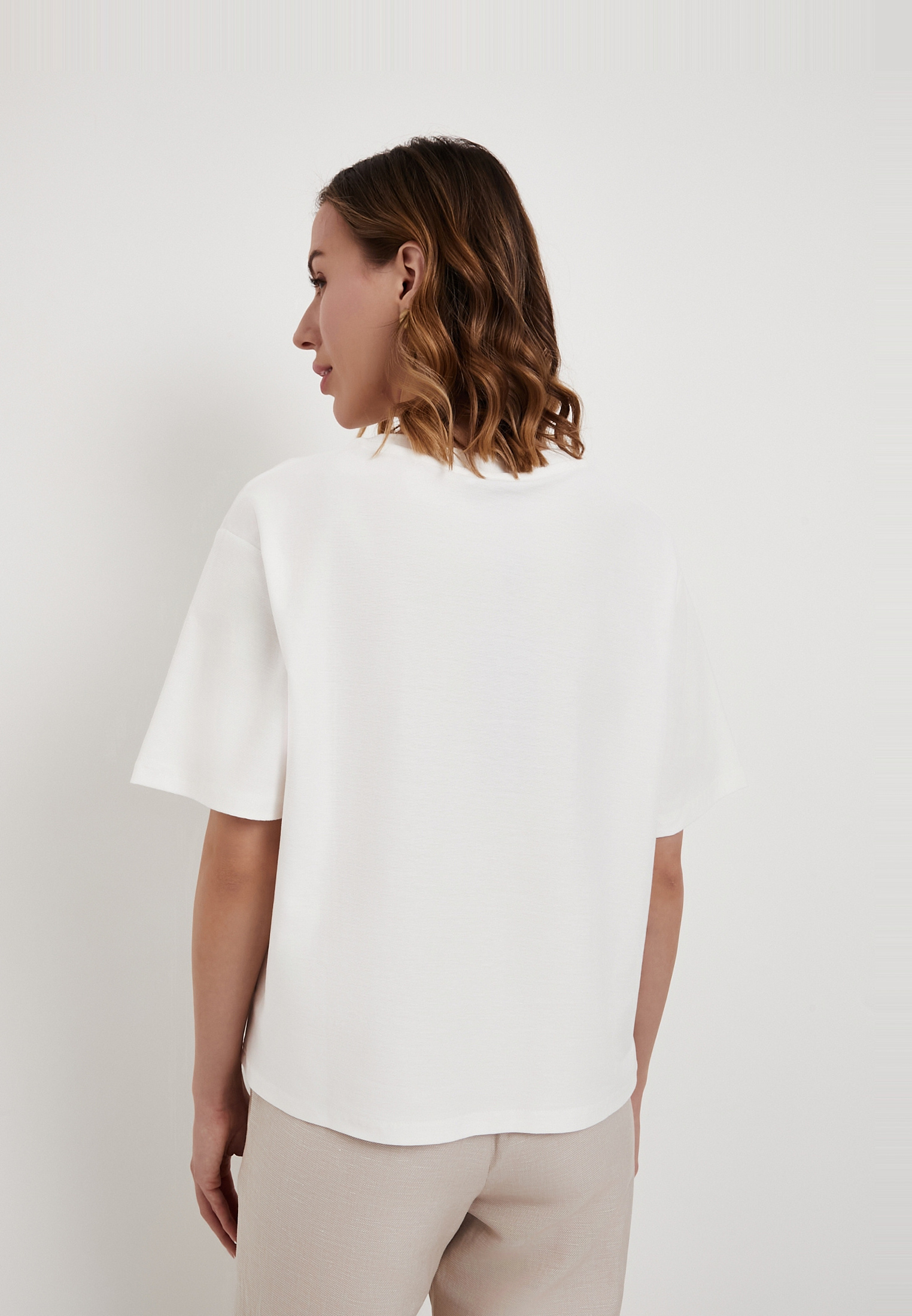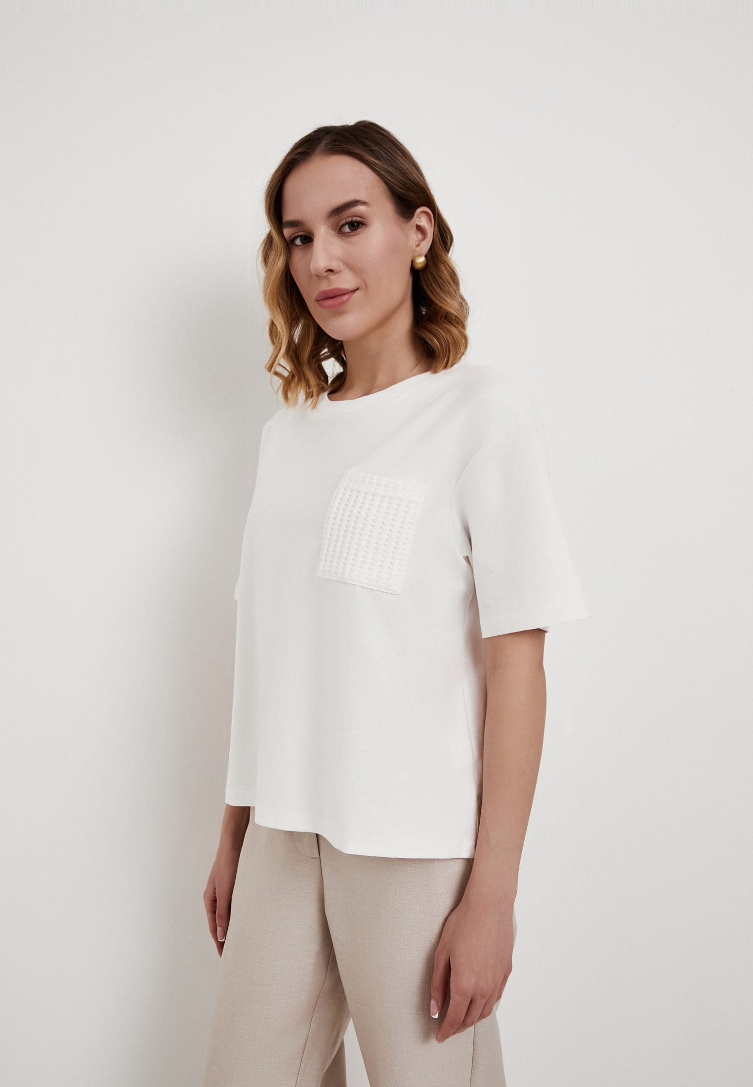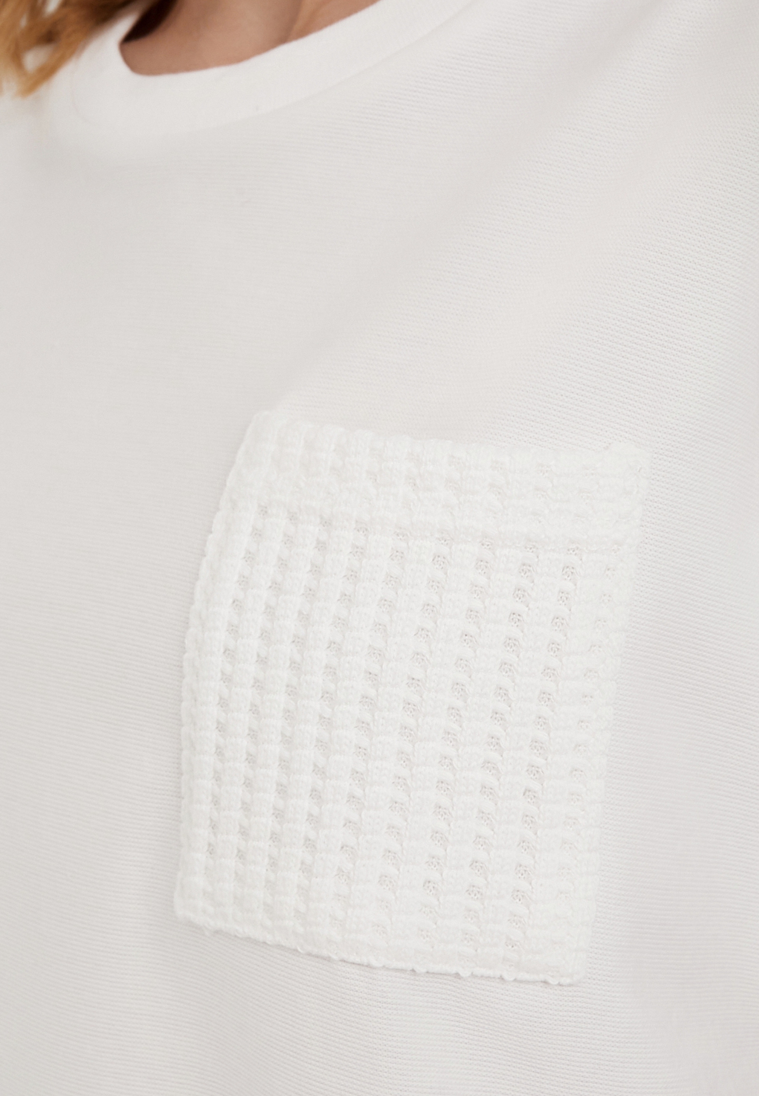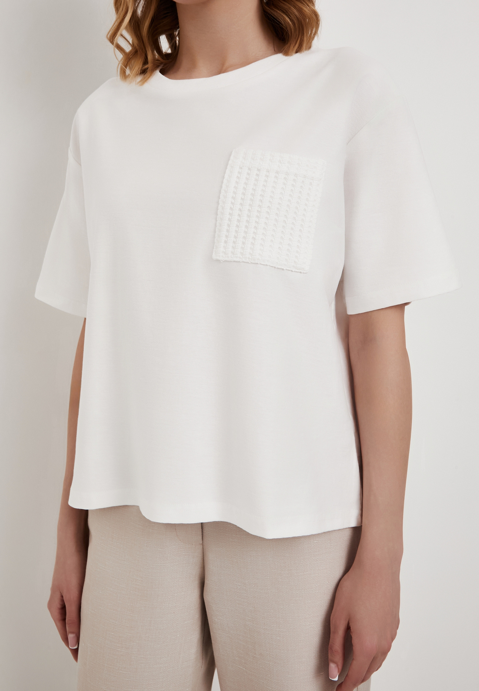 - Белая женская футболка Mascotte - стильная и удобная модель для повседневного гардероба, сочетающая комфорт и лаконичный дизайн. Изделие выполнено из смесового трикотажного полотна (88% хлопок, 12% полиэстер), которое отличается мягкостью, хорошей воздухопроницаемостью и износостойкостью, обеспечивая комфорт в течение всего дня. Модель имеет прямой силуэт и классический округлый вырез горловины, благодаря чему легко сочетается с джинсами, юбками и брюками. Оригинальной деталью служит декоративный карман из рельефного трикотажного полотна, который придает футболке выразительность и современный характер. Для сохранения первоначального вида изделия рекомендуется стирка в деликатном режиме при температуре не выше 30°C, вертикальная сушка в тени и глажка при температуре до 110°C. Отбеливание и химчистка не допускаются - такой уход поможет сохранить цвет и структуру ткани на долгое время. Футболка также представлена в черном цвете. На модели размер S. Параметры модели: 88-65-90, рост 174.
