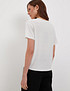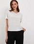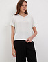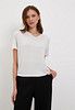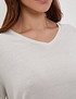 - Футболка с V-образным вырезом горловины изготовлена из мягкого тонкого трикотажа, который обеспечивает непревзойденный комфорт при носке. Узкая полоска из люрексной нити украшает изделие, придавая ему изысканность и стиль. Модель представлена в двух элегантных цветах: молочный с золотым отливом и белый с серебристым блеском. Вы сможете подобрать идеальный вариант для своего гардероба. На модели размер S, параметры 84-60-88, рост 175 см.