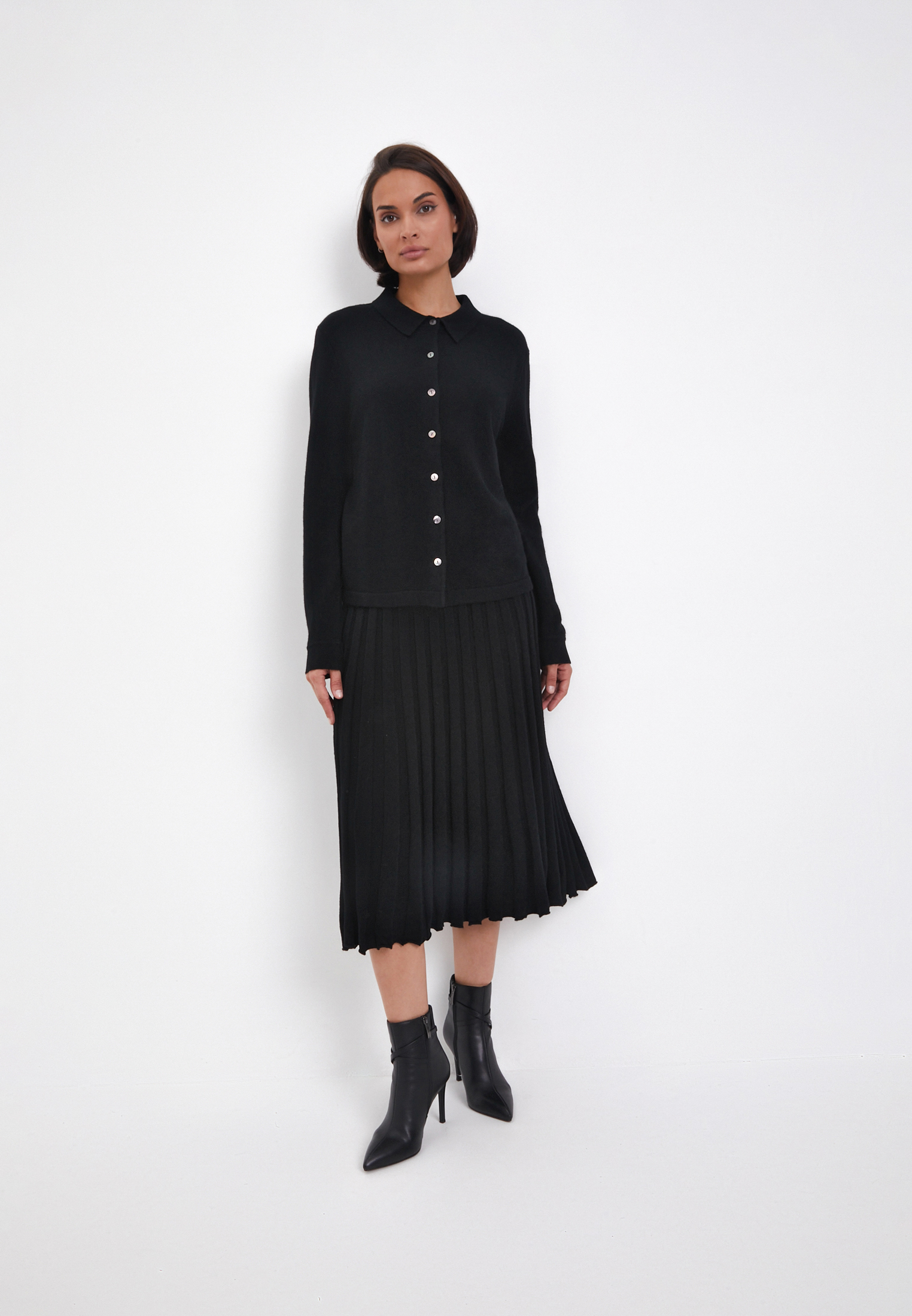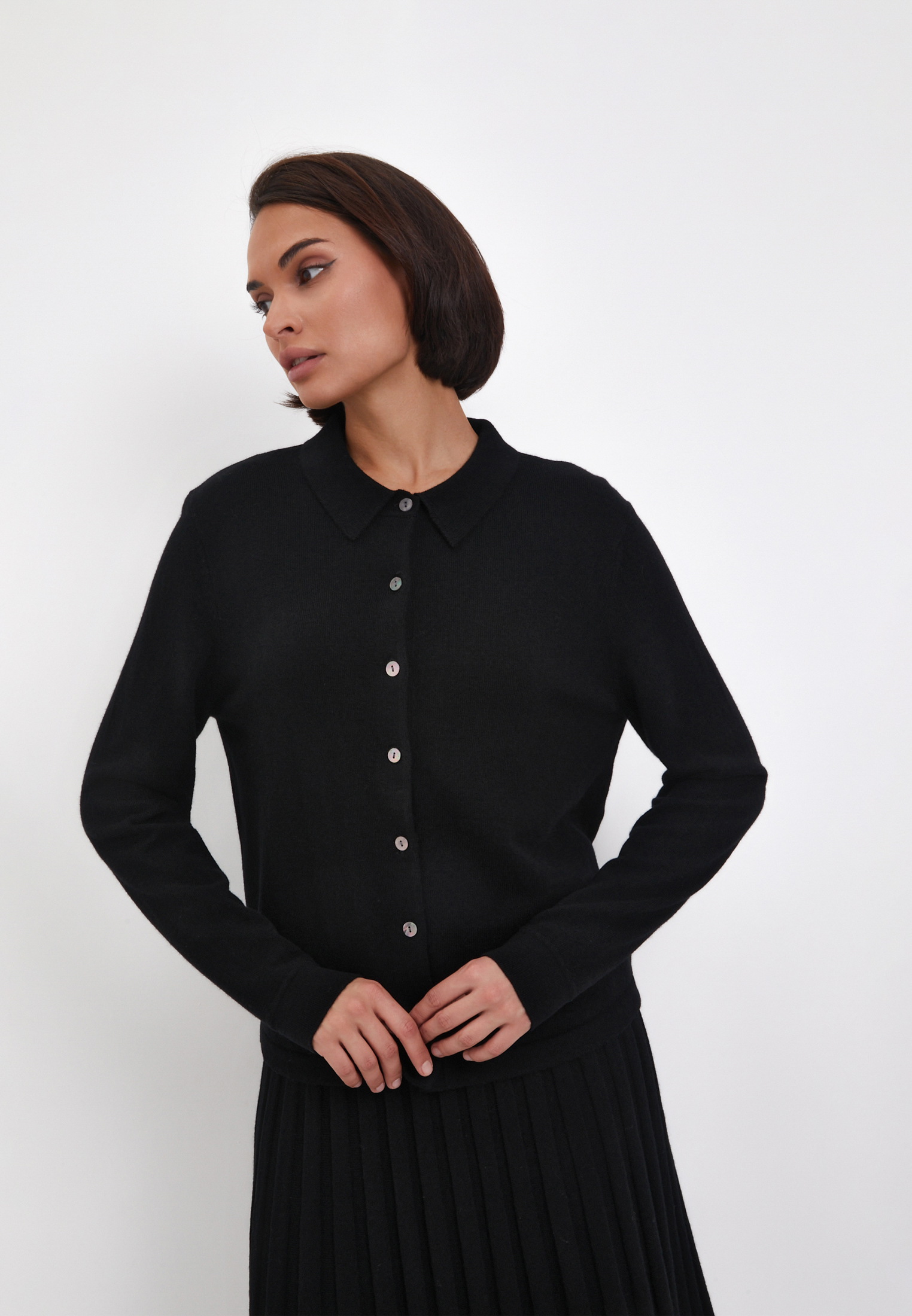 - Женский кардиган Mascotte — идеальный выбор для повседневной носки, сочетающий комфорт и стиль. Изготовлен из 100% натуральной шерсти, обеспечивающей гипоаллергенность и тепло. Черный цвет подчеркивает элегантность и универсальность, позволяя легко комбинировать кардиган с разными вещами. Прямой силуэт подходит для любой фигуры, а гладкая вязка придает ему роскошный вид. Округлый вырез горловины и втачные рукава обеспечивают удобство и свободу движений. Кардиган Mascotte — отличный выбор для тех, кто ценит качество и комфорт. На модели размер S. Параметры модели: 84-62-92, рост 174.