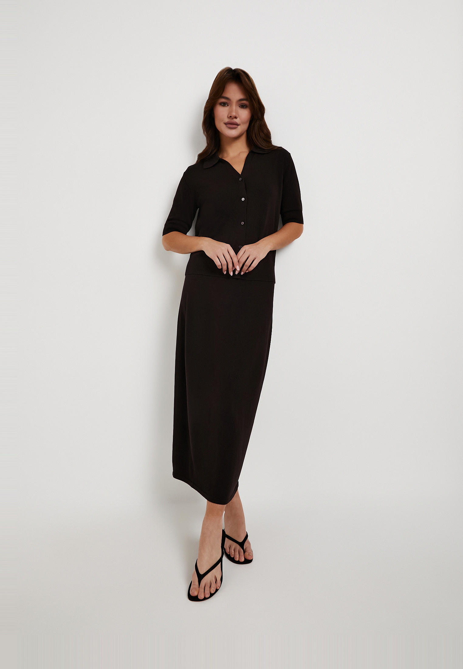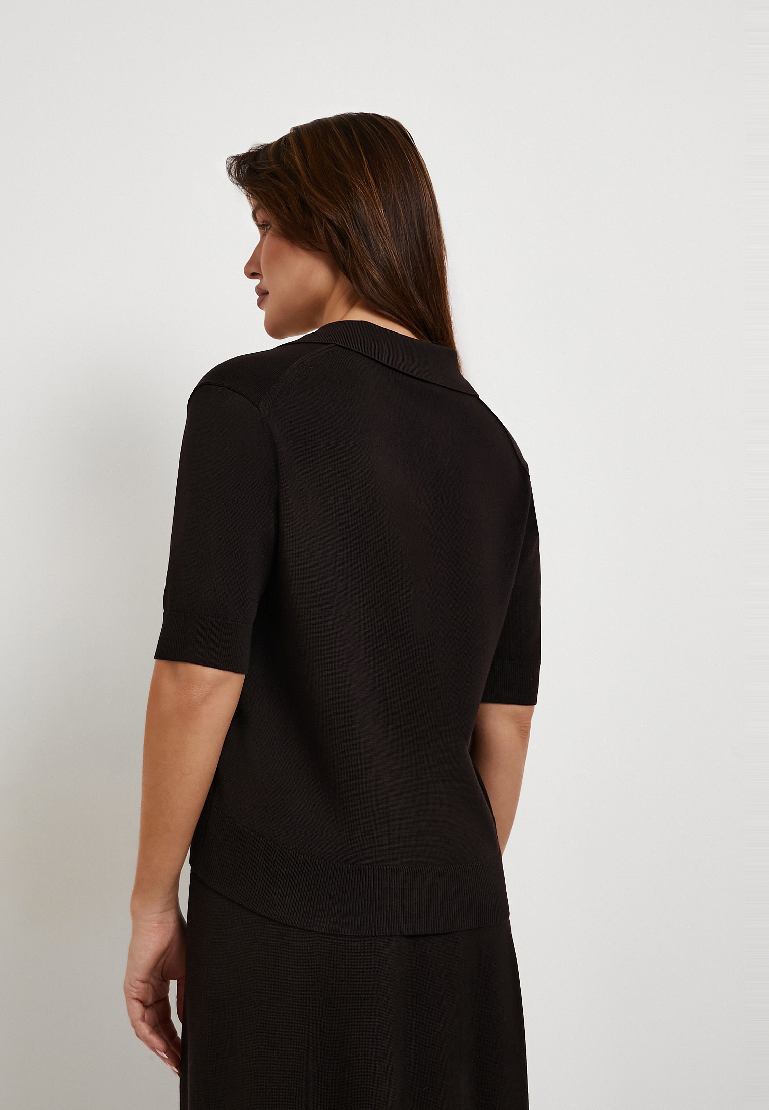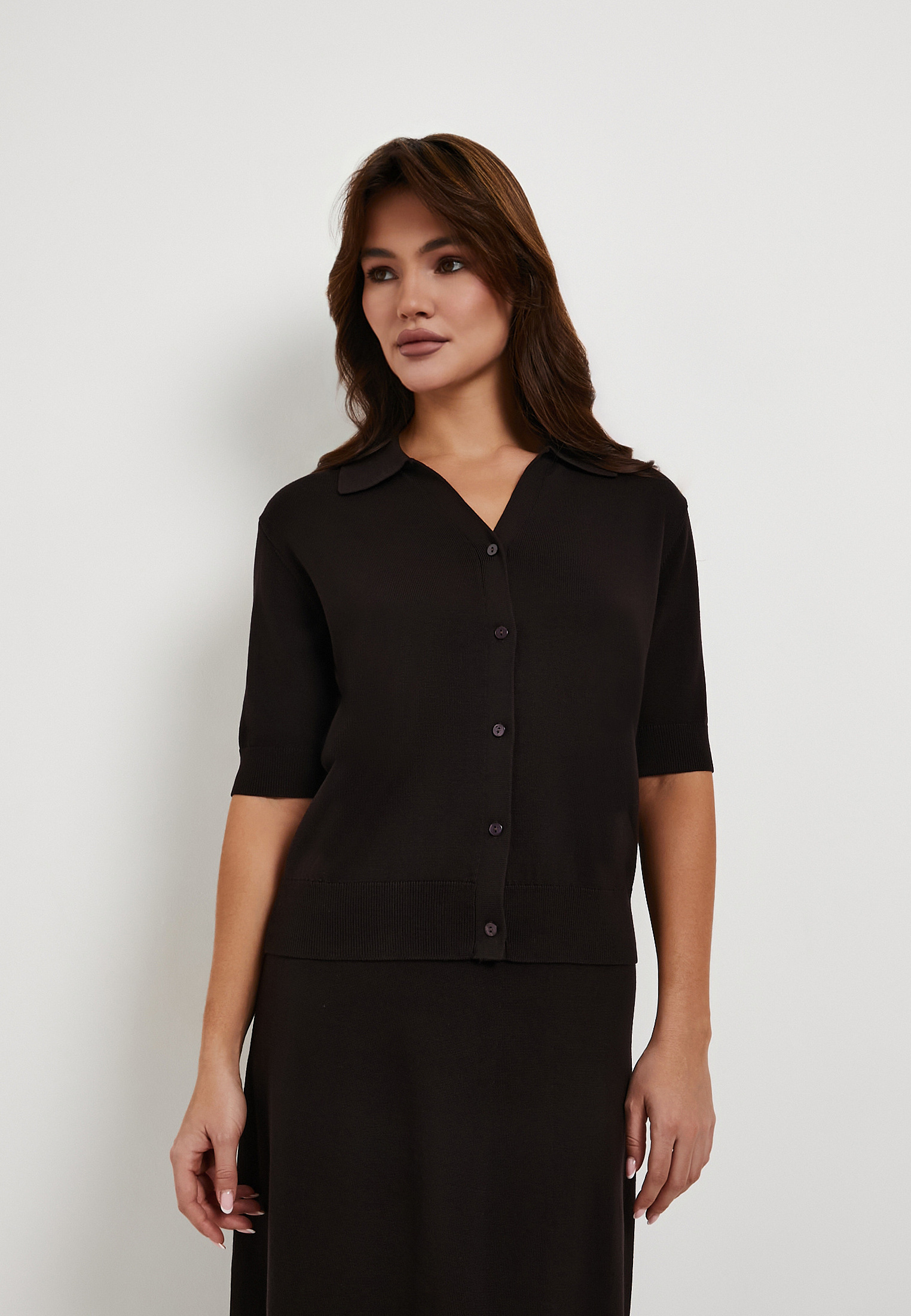 - Темно-коричневый женский кардиган Mascotte - стильная и уютная модель для создания элегантных повседневных и офисных образов. Выполнен из мягкого трикотажа (85% тенсель, 15% шерсть), материал отличается шелковистой гладкостью, хорошей воздухопроницаемостью и способностью сохранять тепло, обеспечивая комфорт в течение дня. Прямой силуэт, короткие рукава, отложной воротник и V-образный вырез подчеркивают лаконичный дизайн, а застежка на пуговицы делает модель практичной и удобной в носке. Кардиган легко сочетается с базовым гардеробом и особенно гармонично смотрится с темно-коричневой юбкой Mascotte арт. 852-6121-2409, формируя завершенный комплект. Рекомендуется деликатный уход: ручная стирка при температуре до 30°C без машинного отжима, горизонтальная сушка в тени, глажка при температуре до 110°C. Отбеливание запрещено, при необходимости допустима щадящая химчистка с углеводородами или тетрахлорэтиленом. На модели размер S, параметры: 82–57–90, рост 172 см. Кардиган также представлен в молочном цвете.