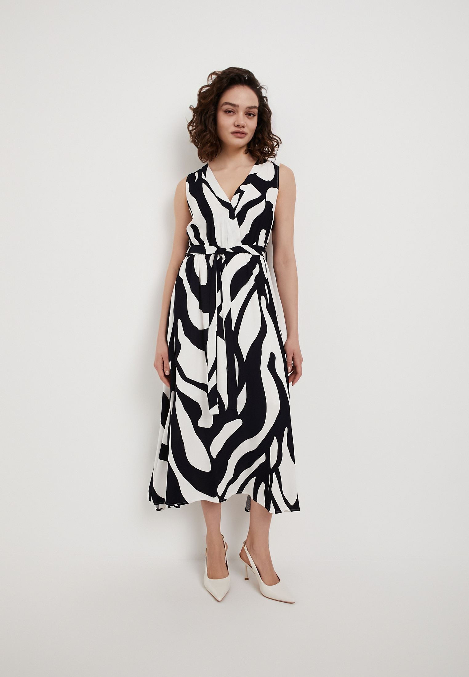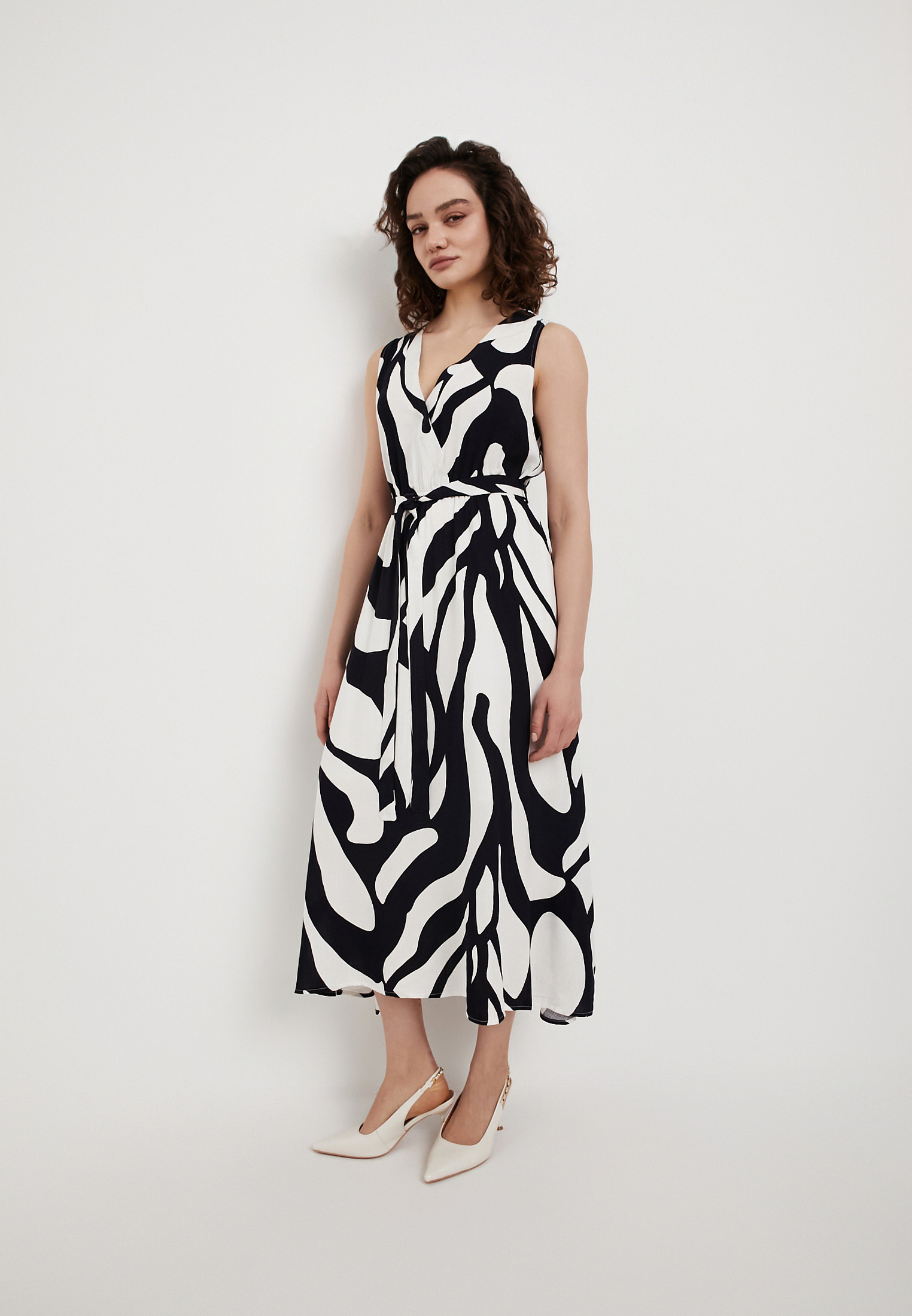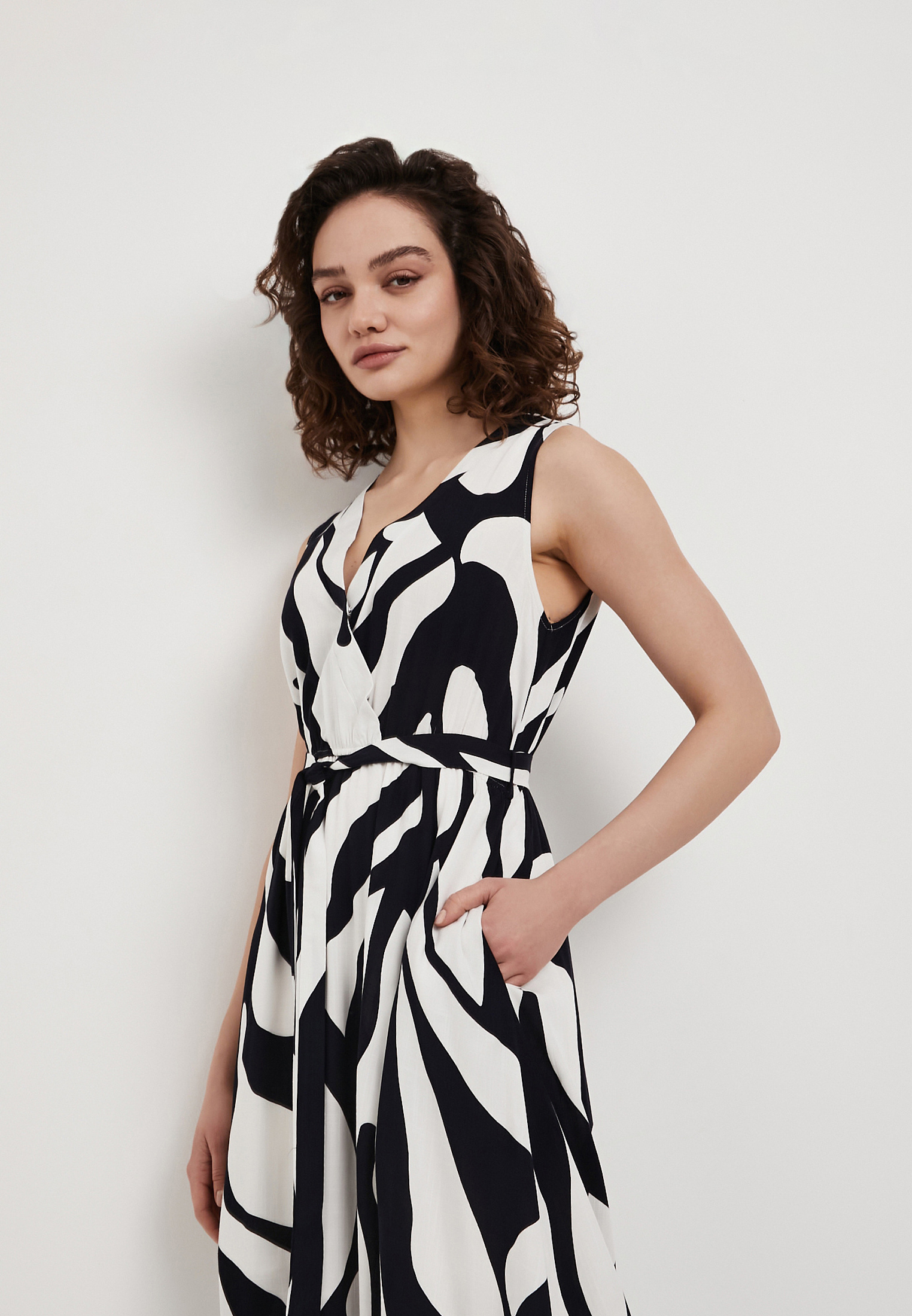 - Летнее женское платье Mascotte с сине-белым принтом - стильный и комфортный вариант для повседневных образов в теплое время года. Модель выполнена из 100% вискозы - легкой дышащей ткани, приятной к телу и обеспечивающей комфорт даже в жаркую погоду благодаря отличной воздухопроницаемости, а хлопковая подкладка делает носку особенно удобной. Платье без рукавов дополнено оригинальным лифом с запахом и V-образным вырезом, который красиво подчеркивает линию декольте и добавляет женственности силуэту. Отсутствие застежек делает модель практичной и удобной в носке, а боковые карманы повышают функциональность. Эластичный пояс на резинке мягко фиксирует изделие по фигуре, создавая аккуратный и гармоничный силуэт. Для сохранения первоначального вида рекомендуется деликатная стирка при температуре не выше 30°C без отжима в центрифуге, вертикальная сушка в тени и глажка при температуре до 110°C. Отбеливание и химическая чистка не допускаются. Это платье станет отличным выбором для летних прогулок, путешествий и повседневных образов, сочетая легкость, практичность и женственный стиль.