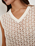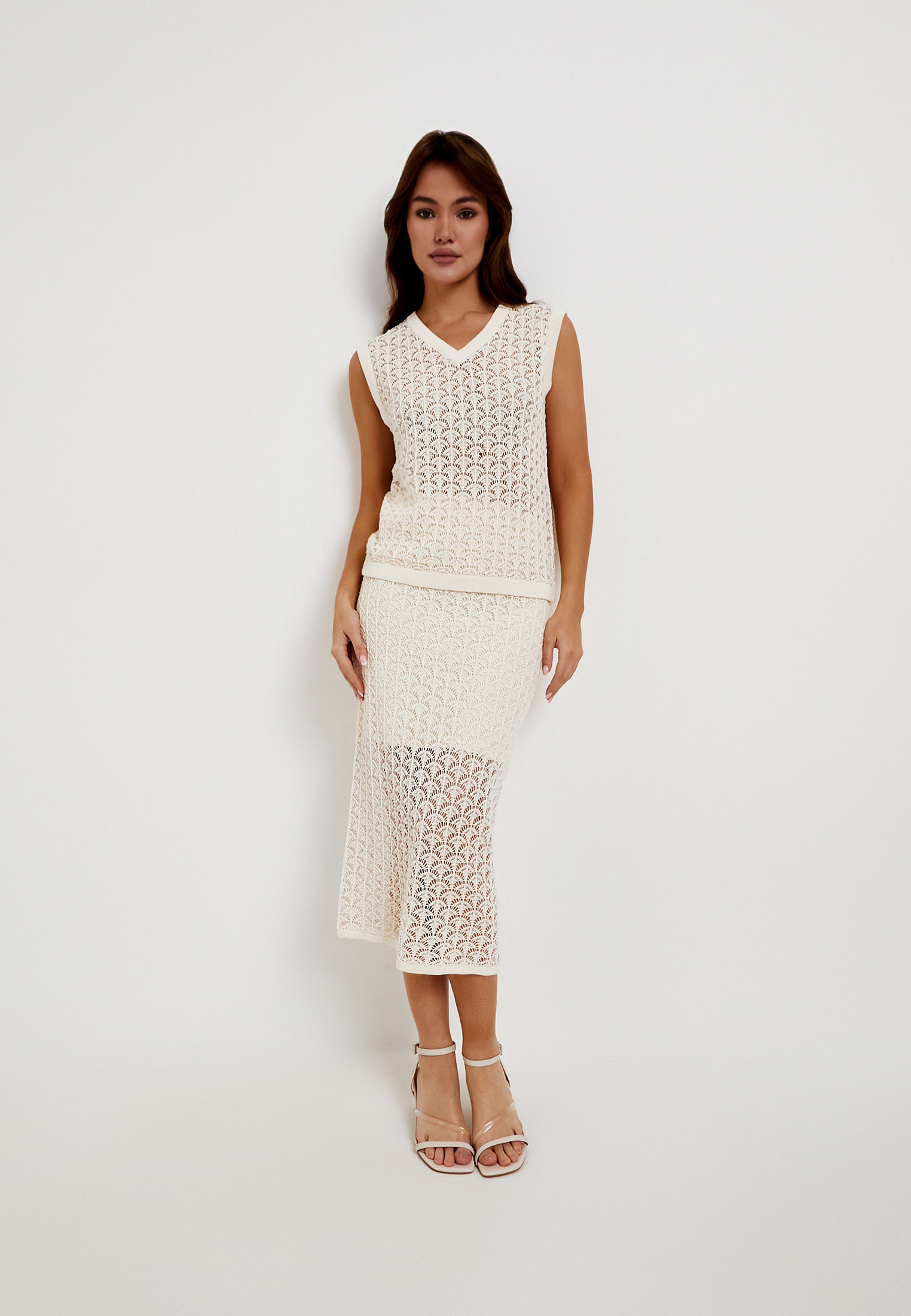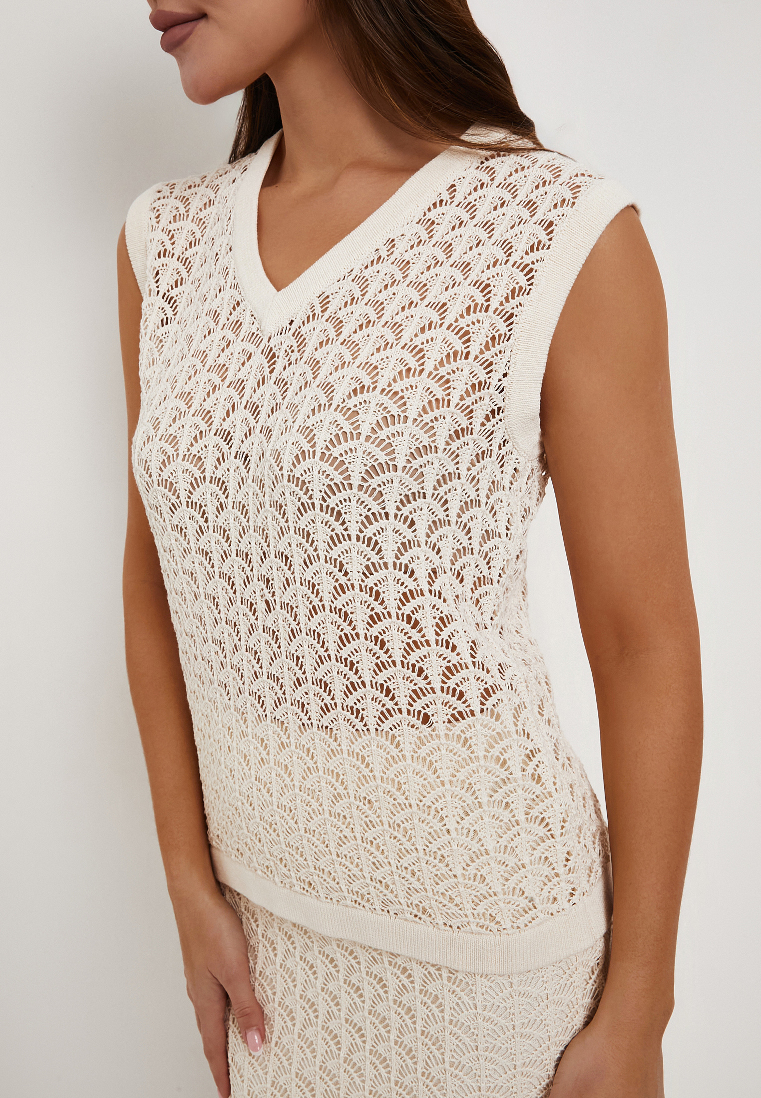 - Бежевый топ Mascotte - легкая и стильная модель для летнего гардероба, в которой сочетаются комфорт и элегантность. Топ выполнен из мягкой смесовой ткани на основе целлюлозных волокон с добавлением хлопка (46% целлюлоза, 32% хлопок, 22% лиоцелл). Материал хорошо дышит, приятен к телу и обеспечивает ощущение свежести в жаркую погоду. Деликатная ажурная вязка придает изделию утонченность, а V-образный вырез и прямой силуэт делают посадку универсальной и удобной для повседневных образов. Для сохранения качества рекомендуется бережный уход: ручная стирка до 30 °C без центрифуги, аккуратный ручной отжим, горизонтальная сушка в тени и глажка при температуре до 110 °C. Отбеливание исключено, при необходимости допустима щадящая химчистка. Топ отлично сочетается с бежевой юбкой Mascotte арт. 852-6102-1008, помогая создать гармоничный летний комплект. На модели размер S, параметры: 82–57–90, рост 172 см.