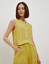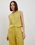 - Жилет из 100%-го льна – это сочетание изысканного стиля и превосходного комфорта. V-образный вырез и фигурный низ придают изделию элегантный и женственный вид. Слегка свободный крой обеспечивает максимальную свободу движений и комфорт в носке. Лен – мягкий, легкий и приятный на ощупь материал. Ткань проходит специальную обработку, которая умягчает его волокна. Кроме того, лен обладает антистатическими свойствами, не выгорает и не скатывается. Материал отлично пропускает воздух, впитывает влагу и не создает эффект парника, что делает его идеальным для летней одежды. Жилет представлен в четырёх цветах: бежевом, коричневом, чёрном и ярком лимонном оттенке. Идеально сочетается с брюками и жакетом из льняной коллекции, образуя стильный костюм-тройку.