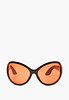 - Эта модель очков отличается массивной оправой и большими линзами, которые придают им трендовый гипертрофированный объем. Такие очки отлично подойдут для создания яркого и запоминающегося образа. Модель изготовлена из пластика и представлена в черном и сиреневом монохроме, а также в черном варианте с оранжевыми линзами.