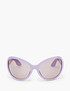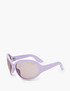 - Эта модель очков отличается массивной оправой и большими линзами, которые придают им трендовый гипертрофированный объем. Такие очки отлично подойдут для создания яркого и запоминающегося образа. Модель изготовлена из пластика и представлена в черном и сиреневом монохроме, а также в черном варианте с оранжевыми линзами.
