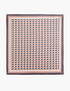 - Стильный платок с геометрическим принтом станет прекрасным дополнением к вашему образу. Его можно использовать как шейный платок или прикрепить к сумке для создания акцента. Платок квадратной формы имеет размеры 70 см в длину и 70 см в ширину. Выполнен из полиэстера и представлен в трех расцветках: черно-розовой, серо-розовой и яркой сине-оранжевой.