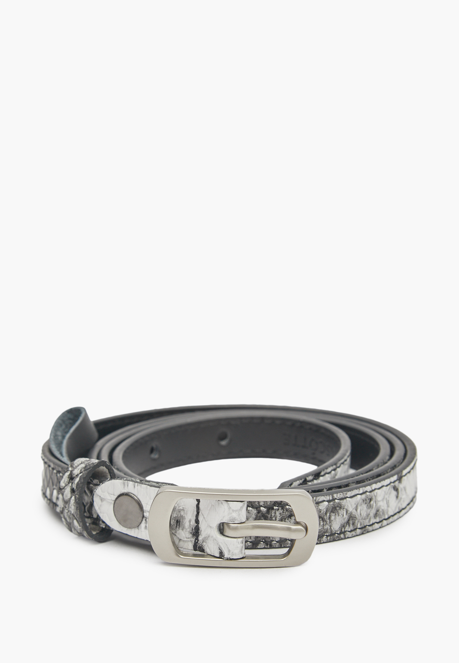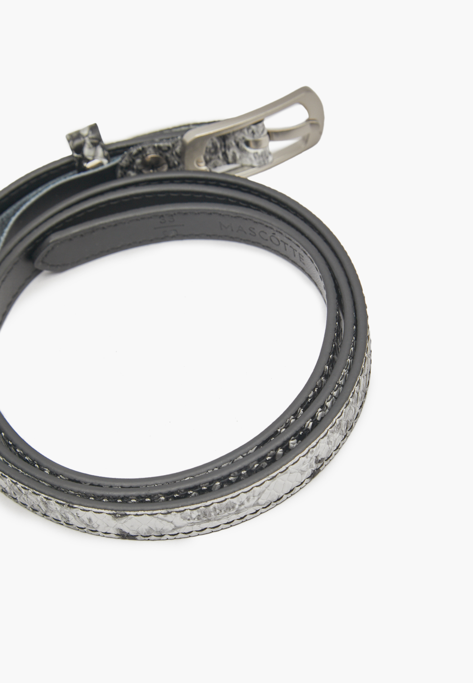 - Стильный женский ремень Mascotte серого цвета станет изысканным дополнением к вашему образу. Ремень выполнен из натуральной кожи спилка высокого качества, как и его подкладка, что гарантирует долговечность и приятные тактильные ощущения. Модель имеет элегантную ширину в 1 см и длину 95 см, идеально подходящую для ношения на талии или бедрах. Фурнитура серебристого цвета придает ремню современный и утонченный вид. Этот лаконичный и качественный аксессуар от Mascotte подчеркнет ваш безупречный вкус.