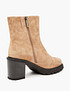 - Зимние лаконичные ботильоны из велюра должны быть в гардеробе каждой женщины. Подклад и стелька пары выполнены из натурального меха с дополнительной теплоизоляцией пяточной зоны для комфортных прогулок при температуре 0/-15 градусов. Каблук высотой 8,2 см визуально вытягивает силуэт. Представлены в черном и бежевом оттенке на выбор.